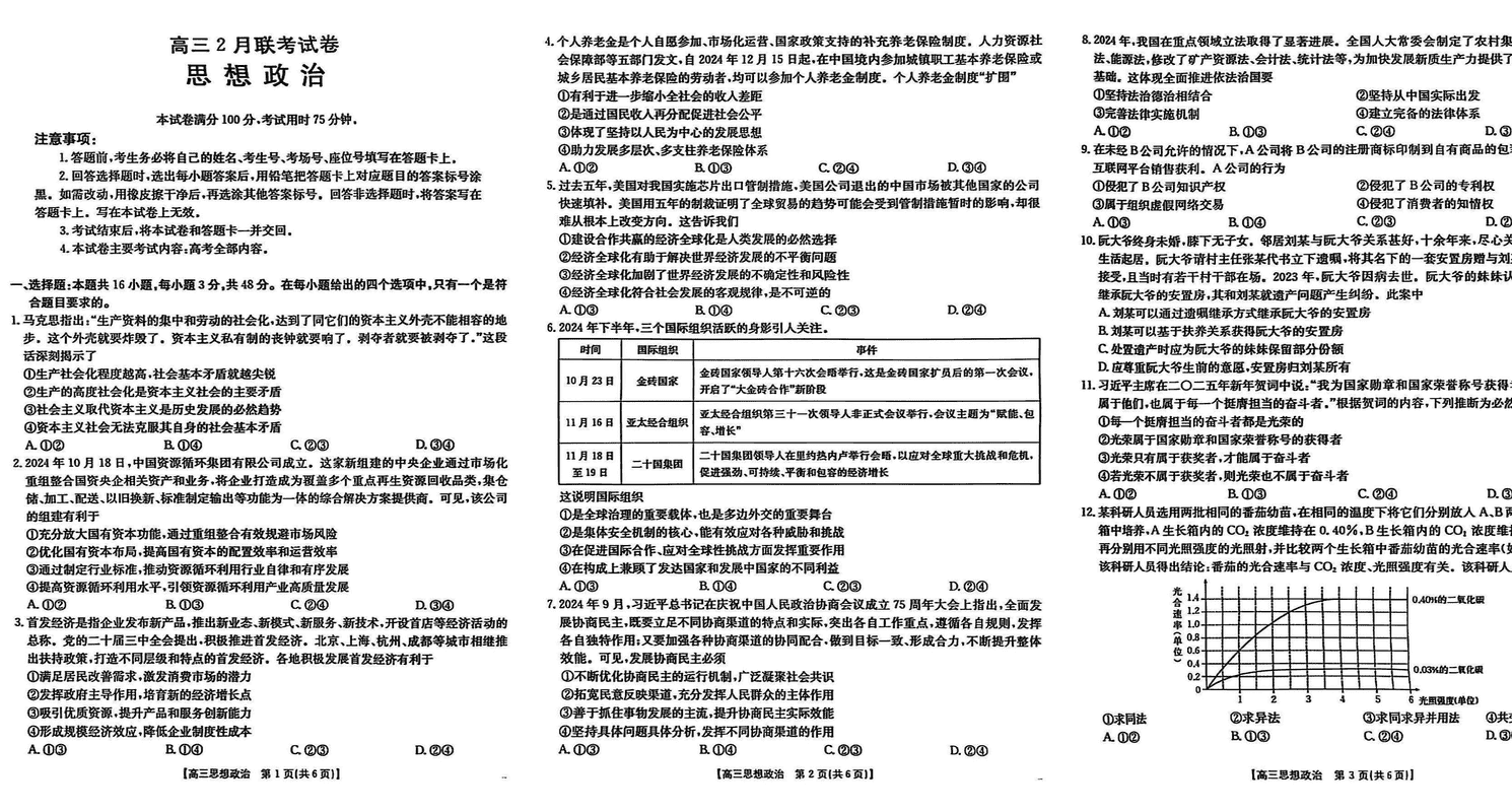 湖北鄂东新领先协作体2025届高三下学期2月联考政治试题及答案