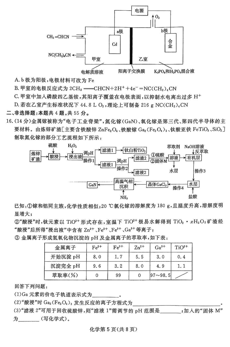 四川省2025届高三下学期第一次教学质量联合测评化学试题及答案
