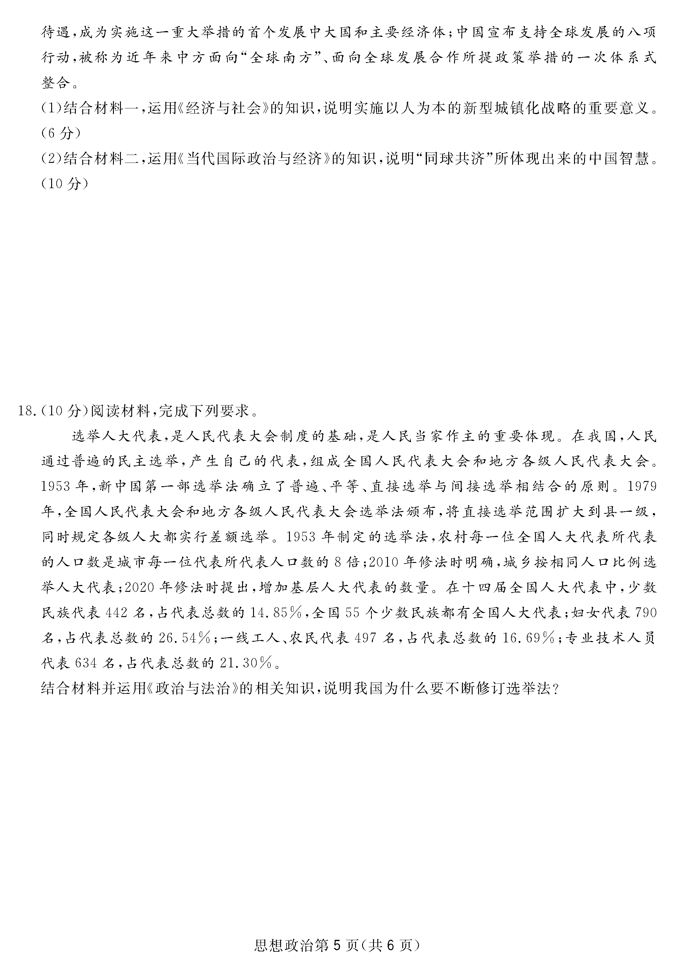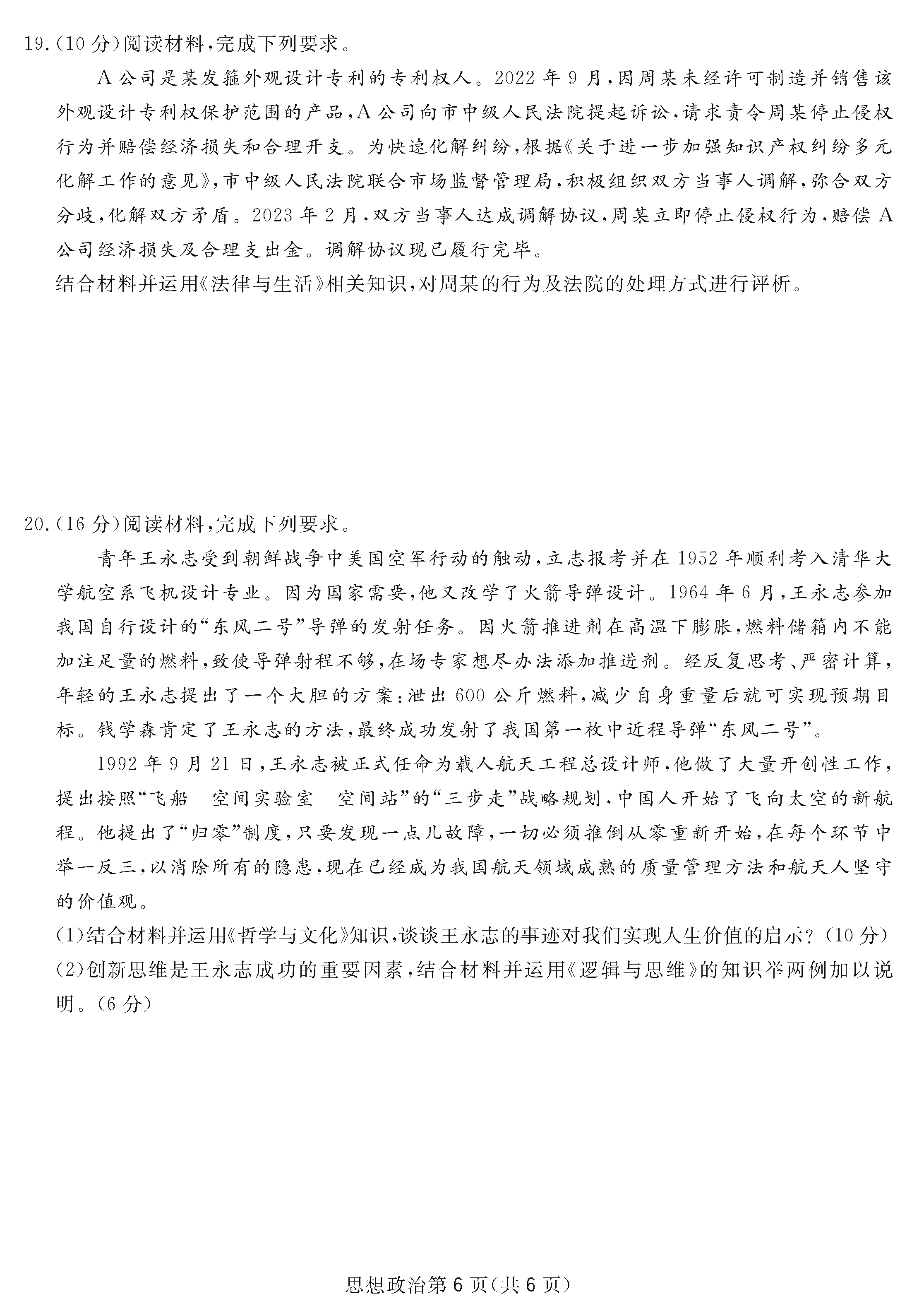 四川省2025届高三下学期第一次教学质量联合测评政治试题及答案