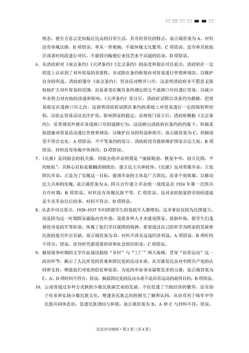 云南省三校2025届高三下高考备考实用性联考卷(六)历史试题及答案