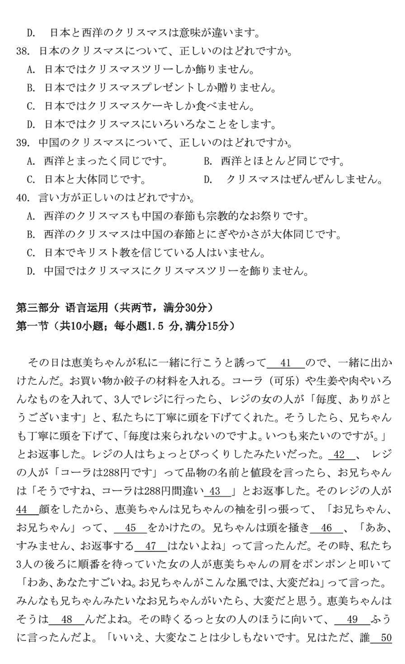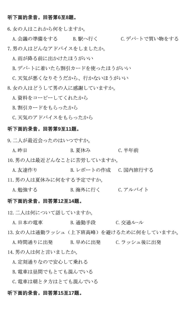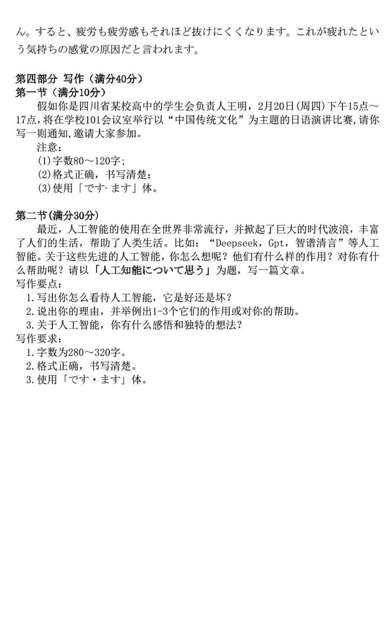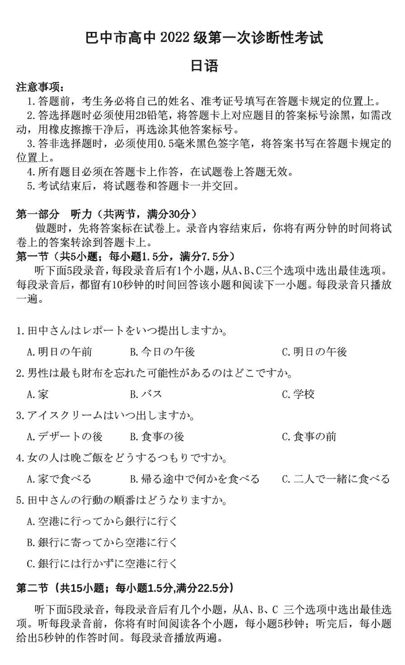 巴中一诊2025年高三第一次诊断性考日语试题及答案