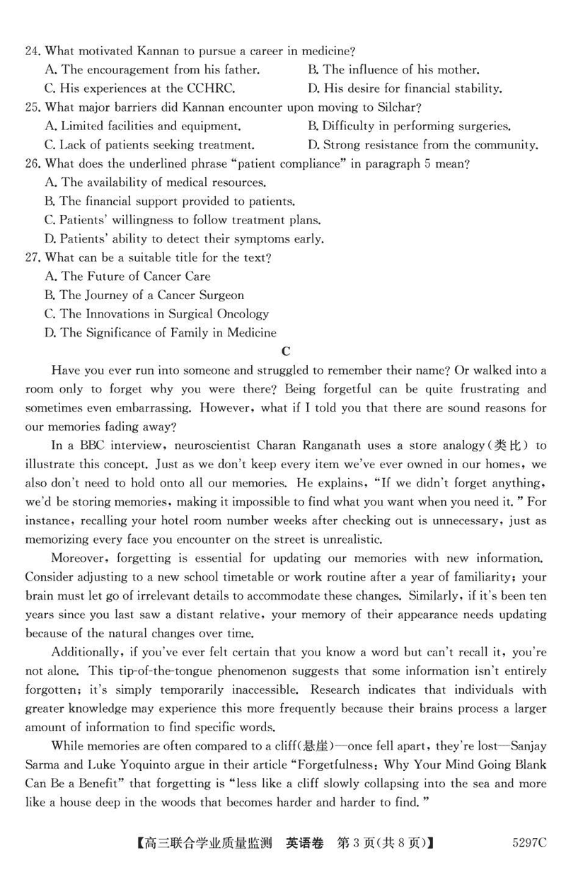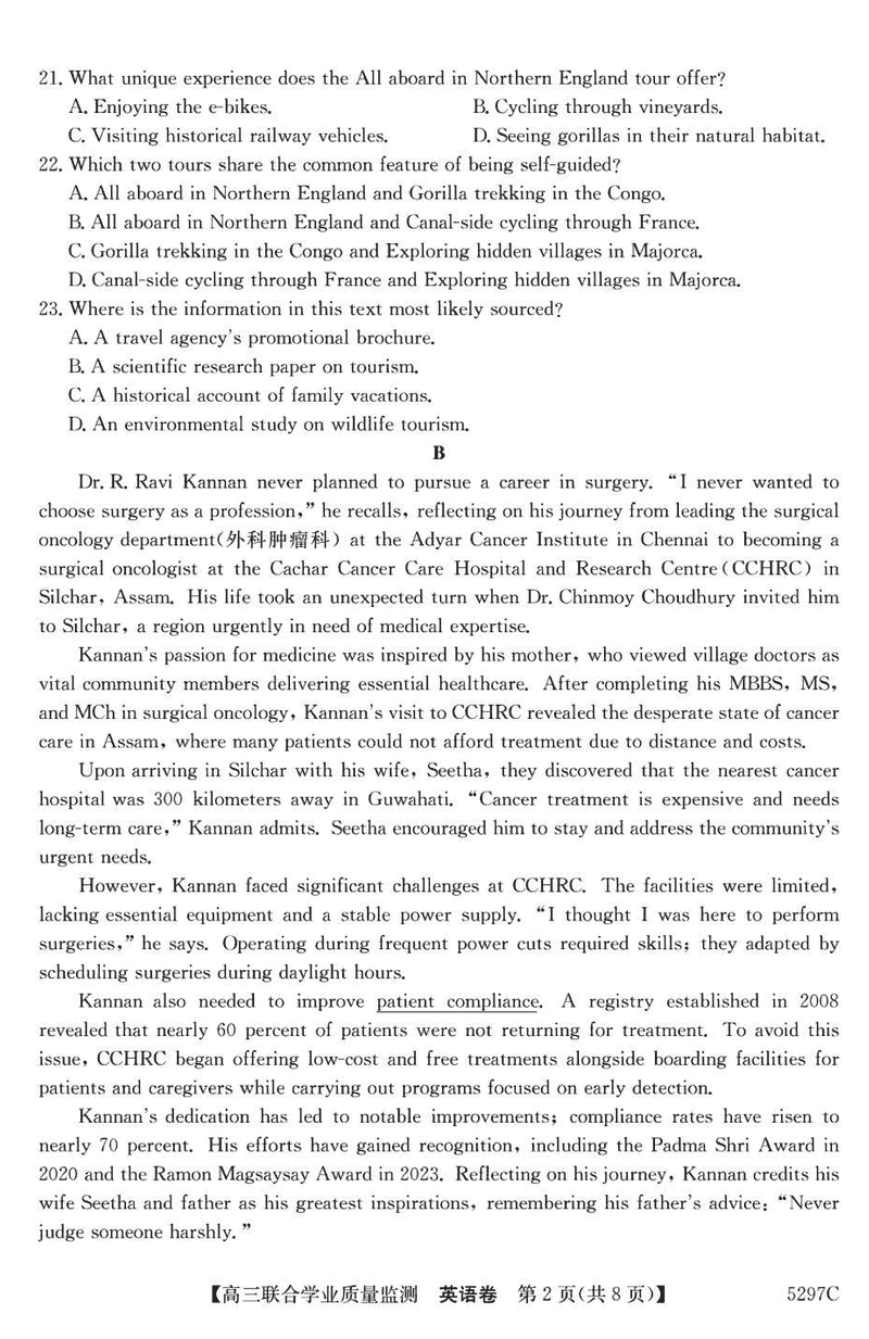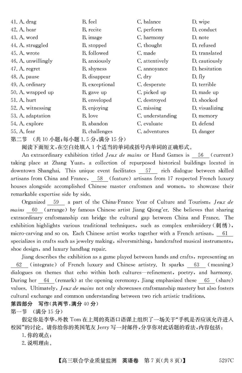 广东省2025届高三"百日冲刺"联合学业质量监测英语试题及答案