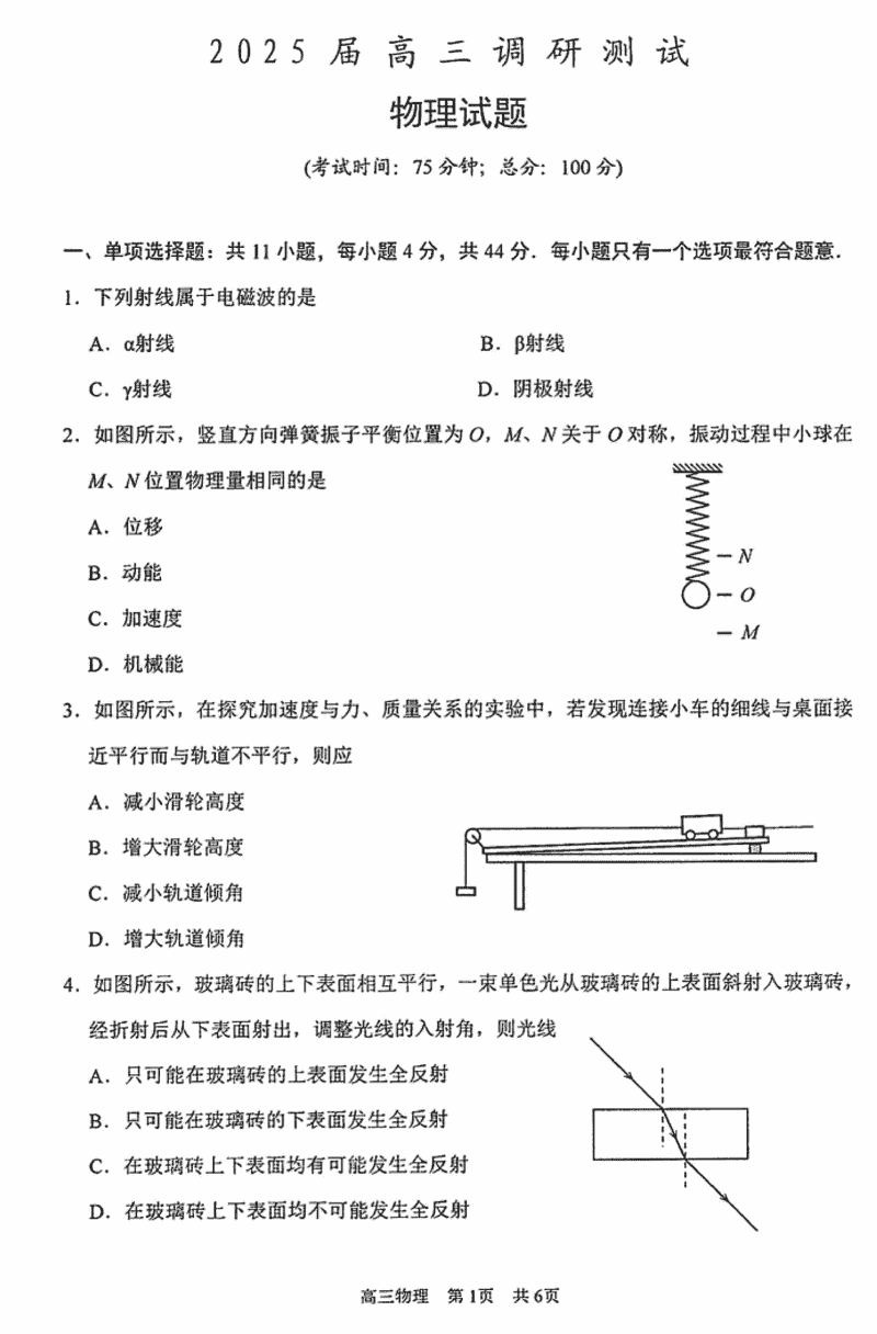 江苏泰州2025届高三下学期开学调研物理试题及答案 时间:2025-02-23 江苏 理综试题 江苏泰州2025届高三下学期开学调研物理考试已于近日开考,为方便考生考后及时查看考试情况,查漏补缺、弥补不足,本文整理了试题答案解析相关信息! 汇总:江苏泰州2025届高三下学期开学调研试题及答案汇总 物理试题及答案解析