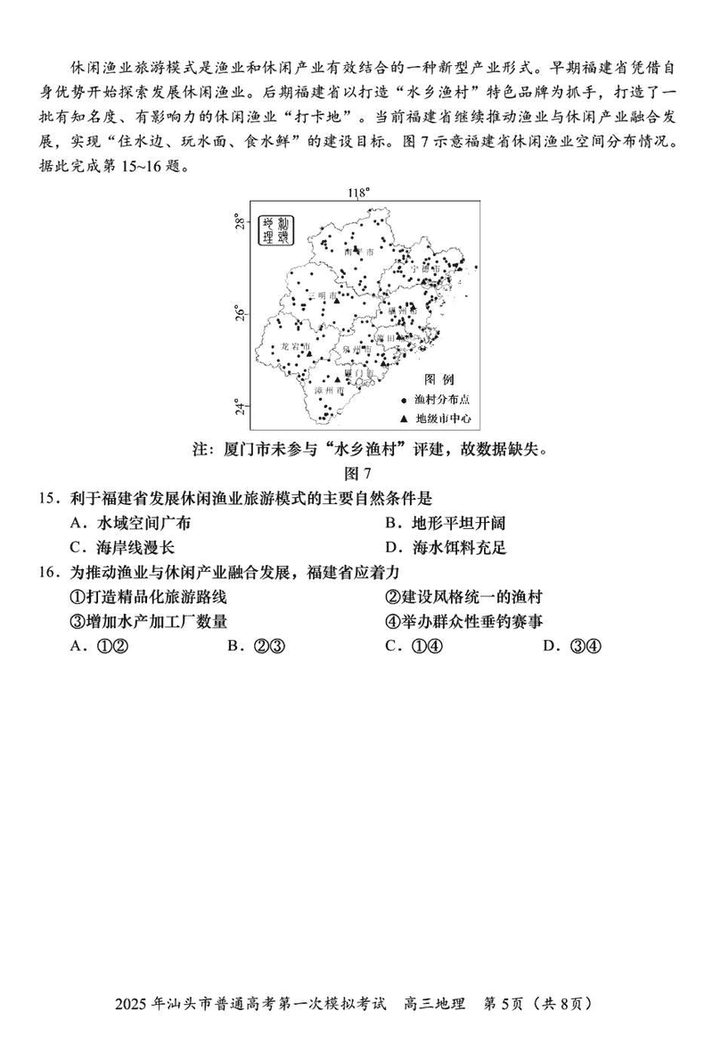 汕头一模2025届高三下学期第一次模拟考地理试题及答案
