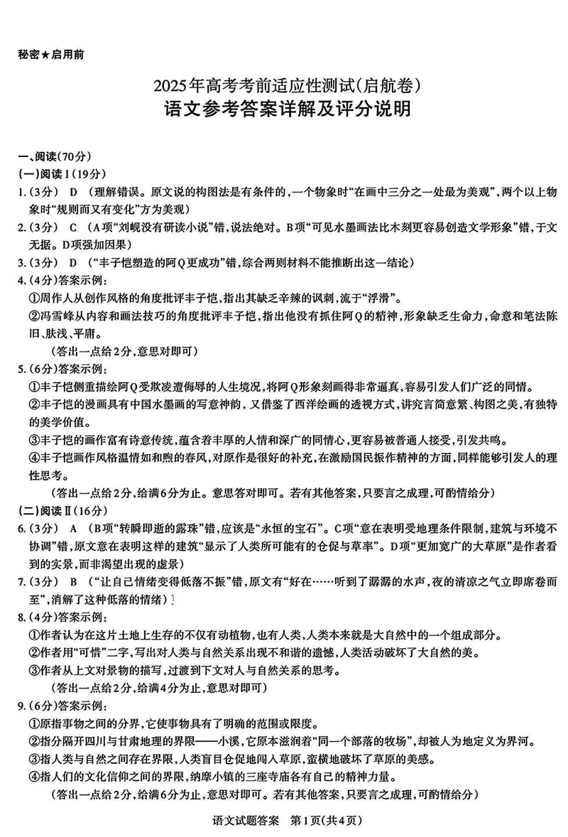 山西一模2025届高三下考前适应性测试启航卷语文试题及答案