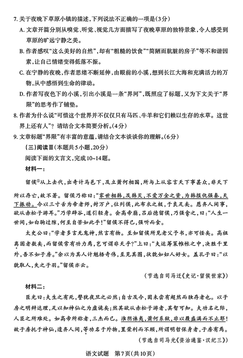 山西 语文试题