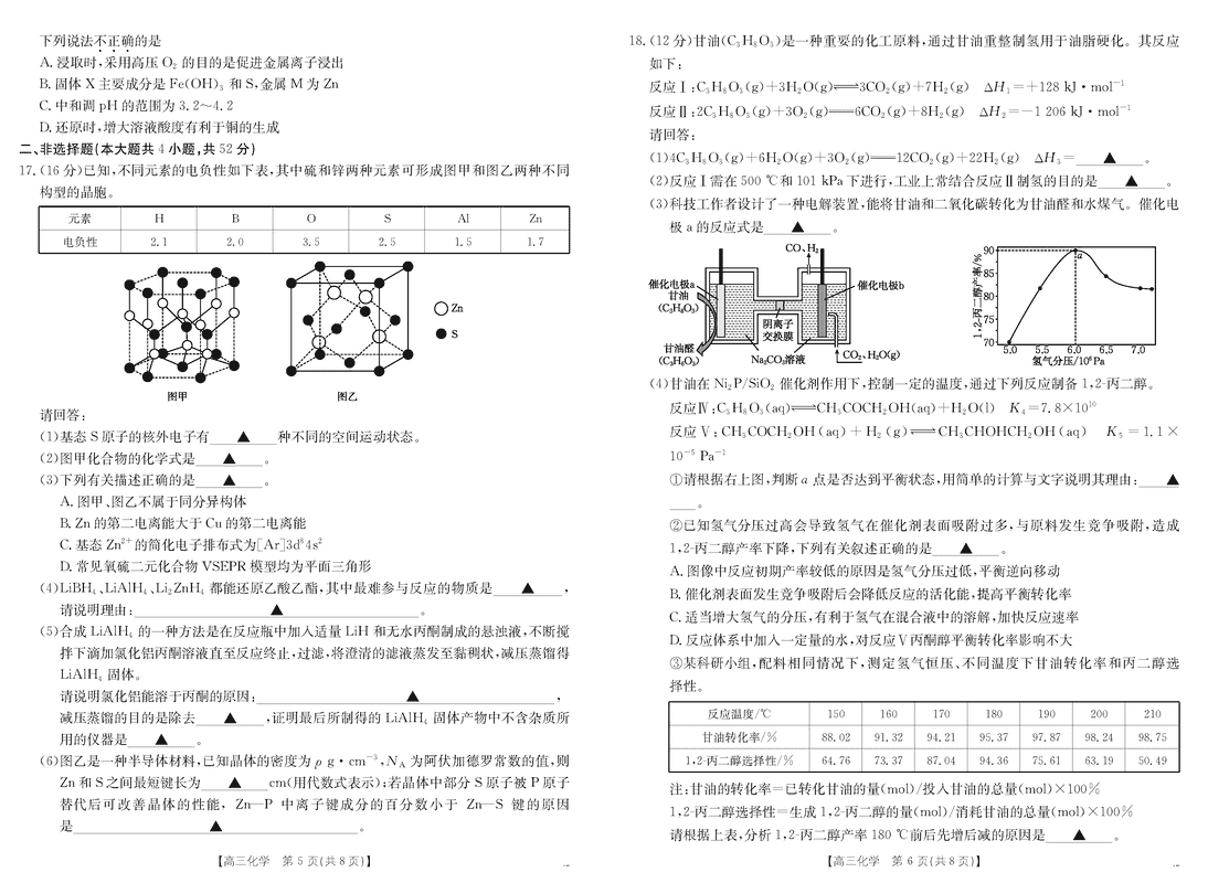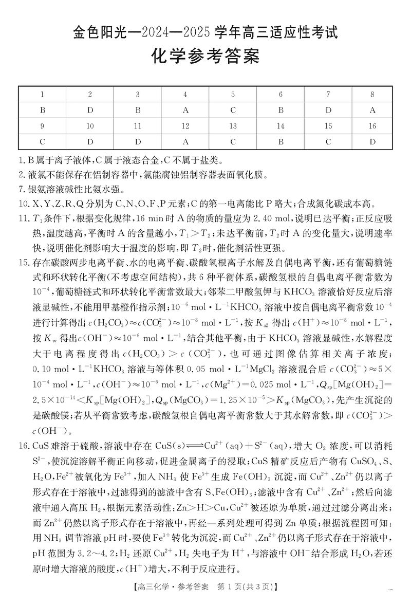 浙江金色阳光2024-2025学年高三下2月适应性化学考试已于近日开考,为方便考生考后及时查看考试情况,查漏补缺、弥补不足,本文整理了试题答案解析相关信息!