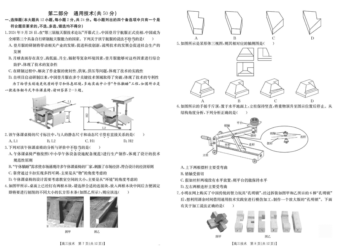 浙江金色阳光2024-2025学年高三下2月适应性技术试题及答案
