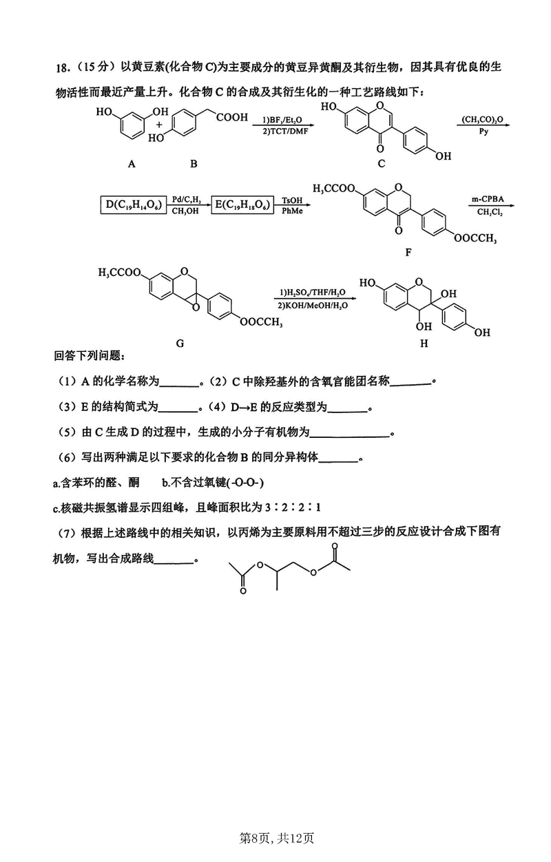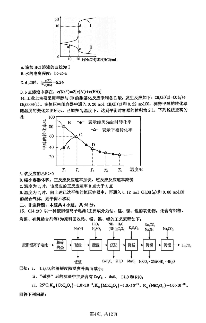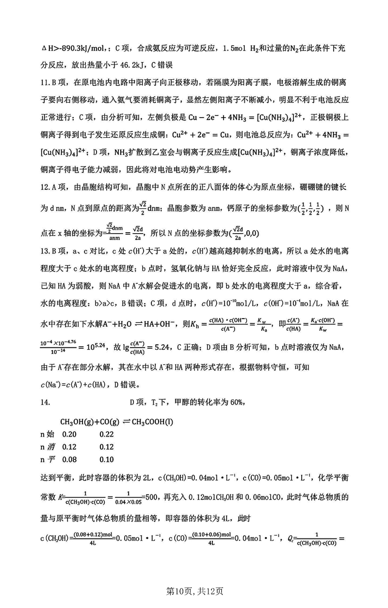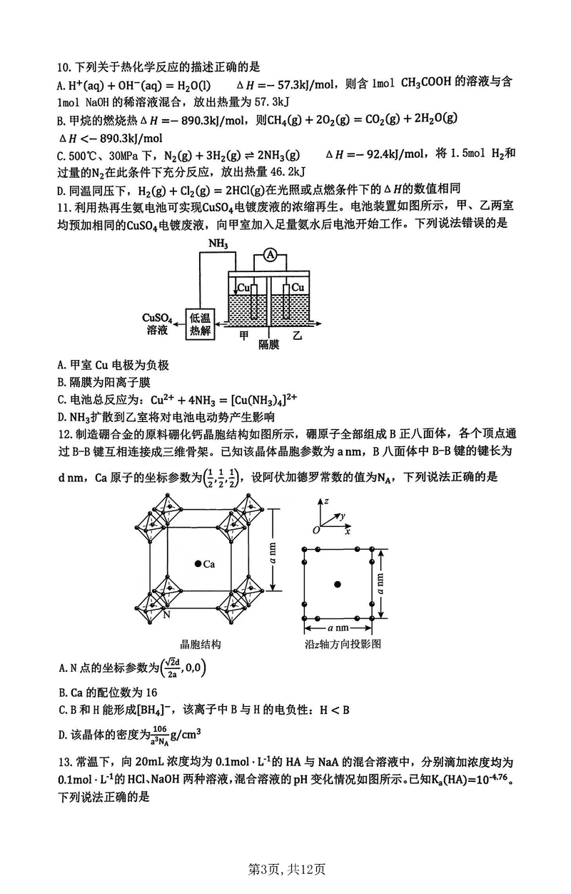 重庆一中2025届高三下学期2月开学考化学试题及答案
