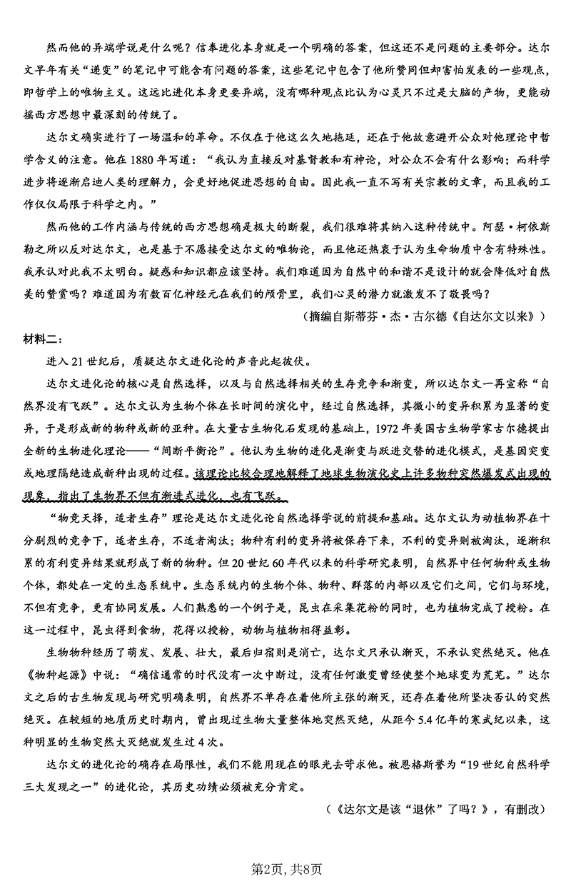 重庆一中2025届高三下学期2月开学考语文试题及答案