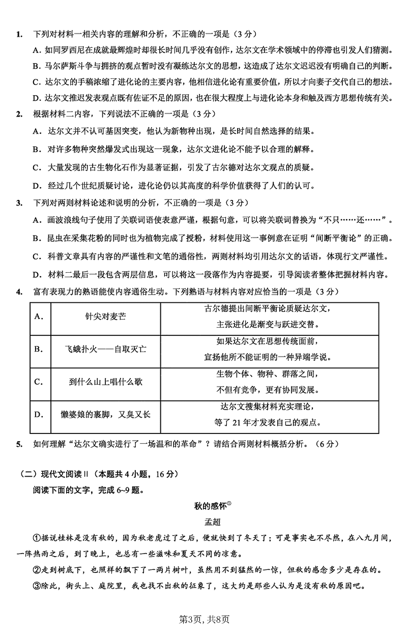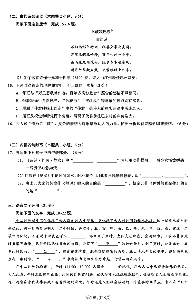 重庆 语文试题