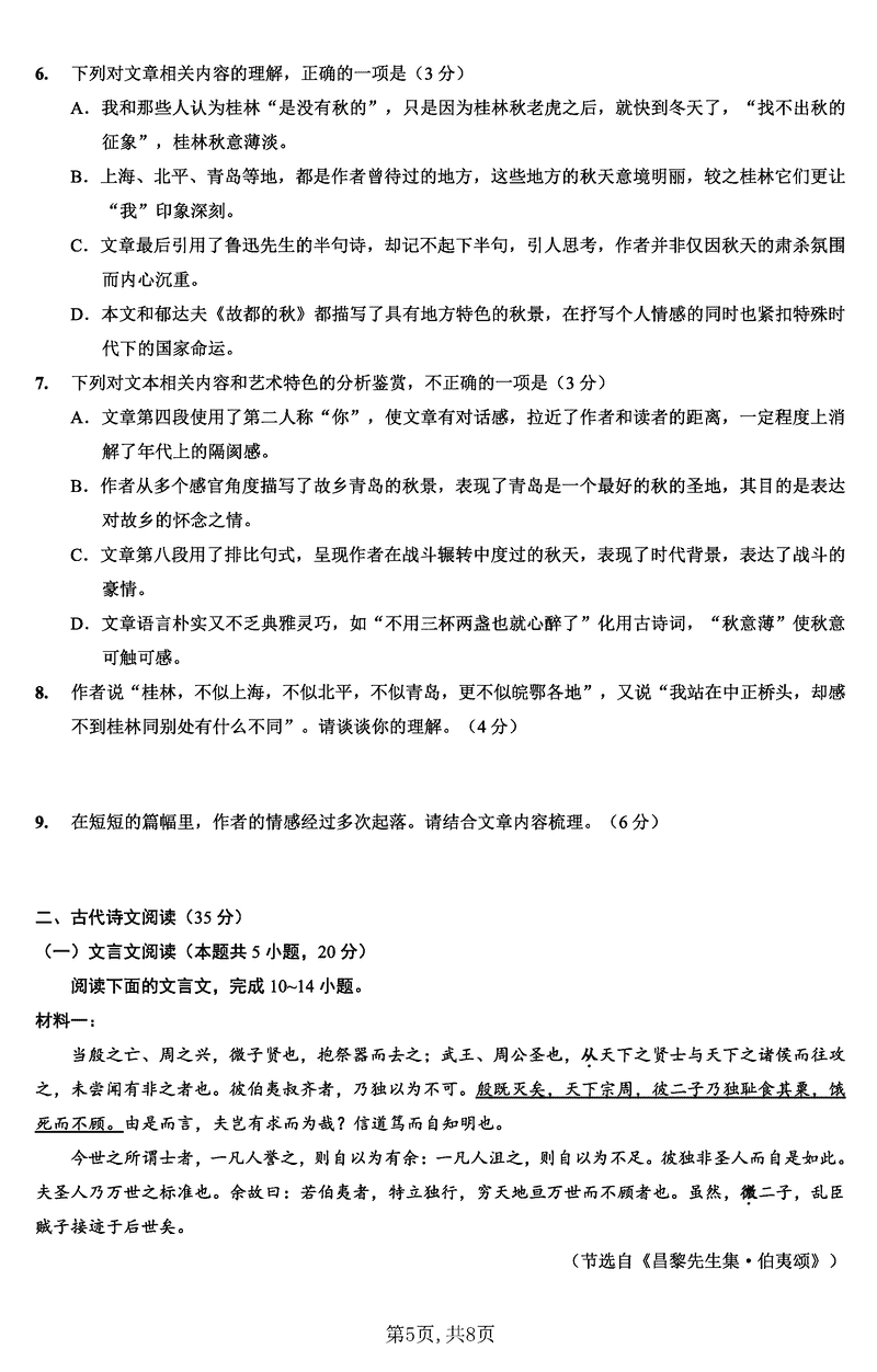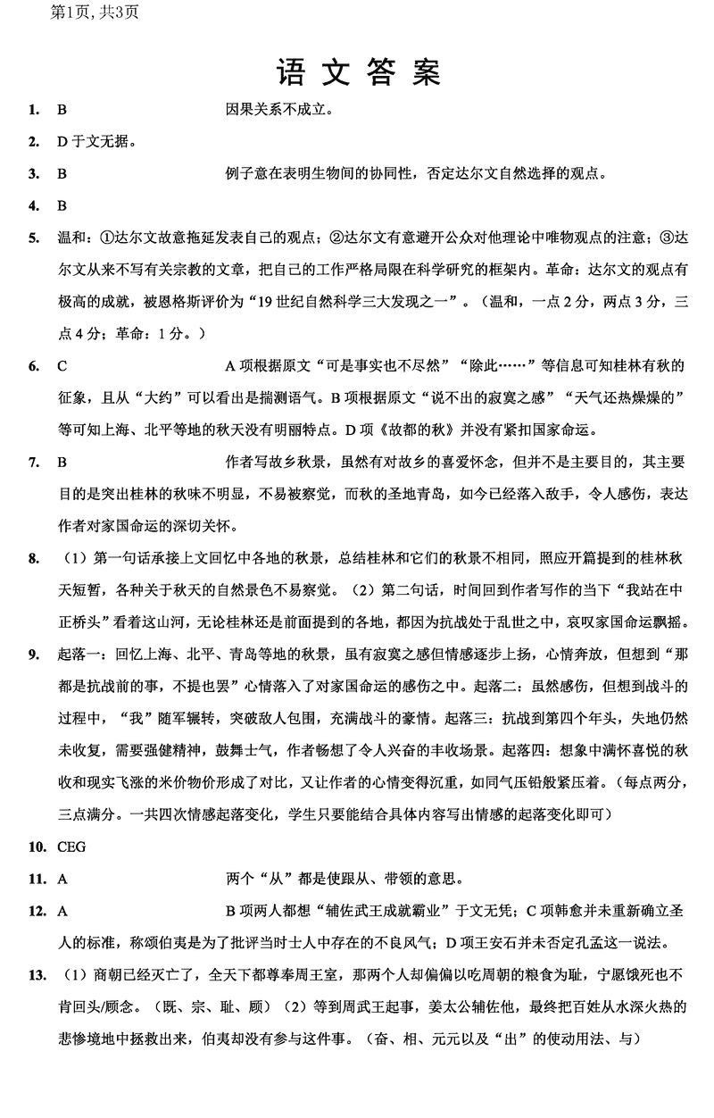 语文试题及答案解析