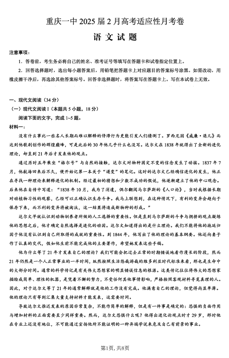 重庆一中2025届高三下学期2月开学考语文考试已于近日开考,为方便考生考后及时查看考试情况,查漏补缺、弥补不足,本文整理了试题答案解析相关信息!