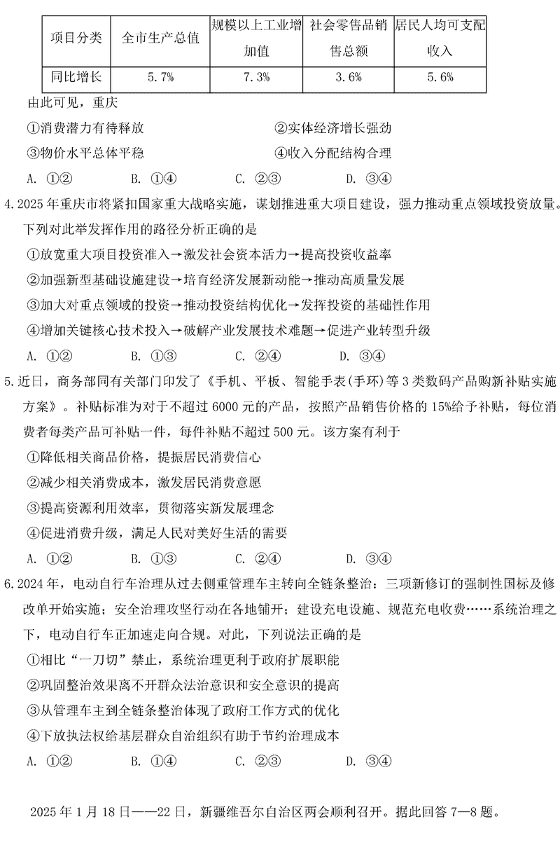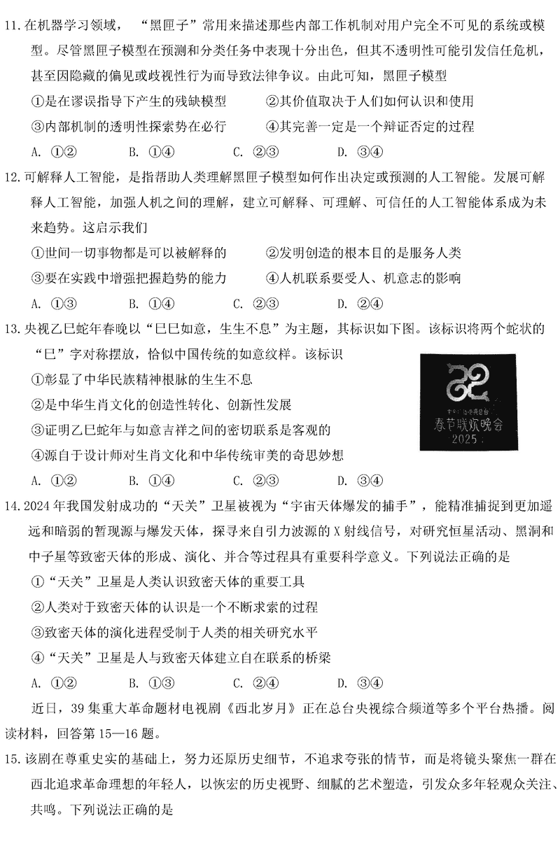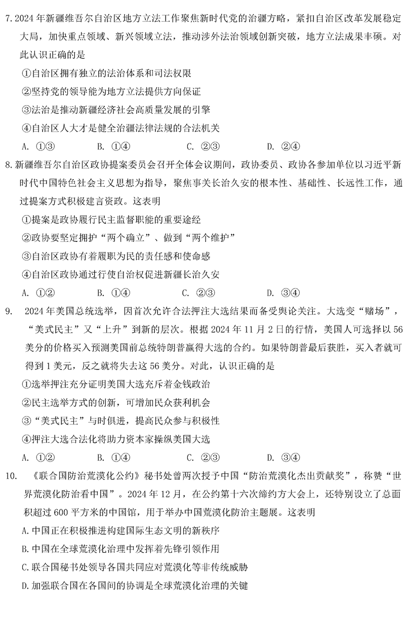 重庆拔尖强基联盟2025届高三下2月联考政治试题及答案