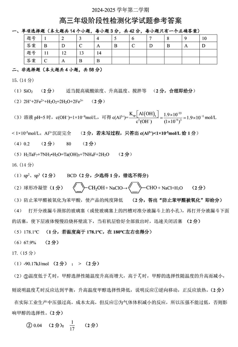 合肥市普通高中六校联盟2024-2025学年高三下学期阶段性检测化学考试已于近日开考,为方便考生考后及时查看考试情况,查漏补缺、弥补不足,本文整理了试题答案解析相关信息!