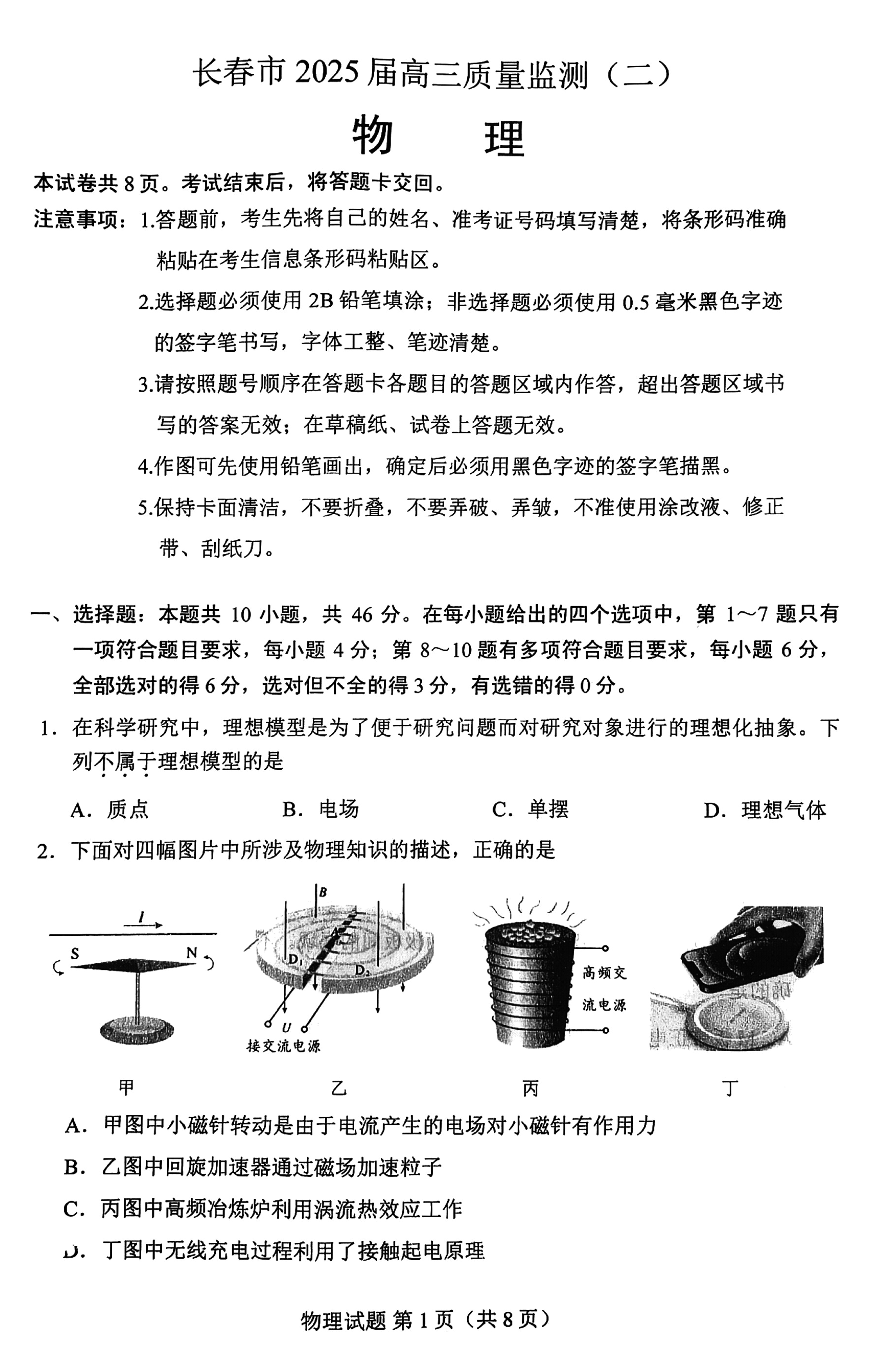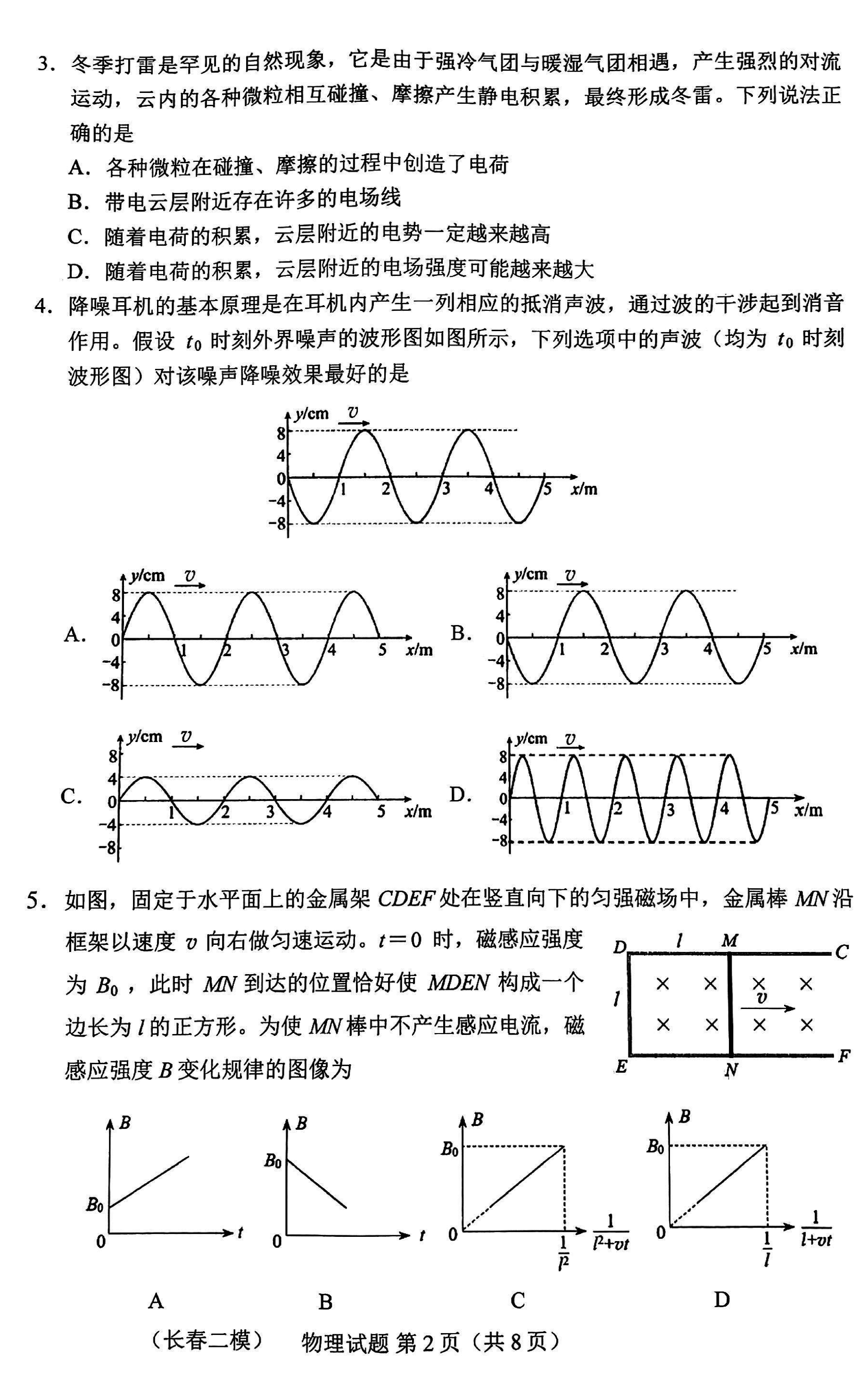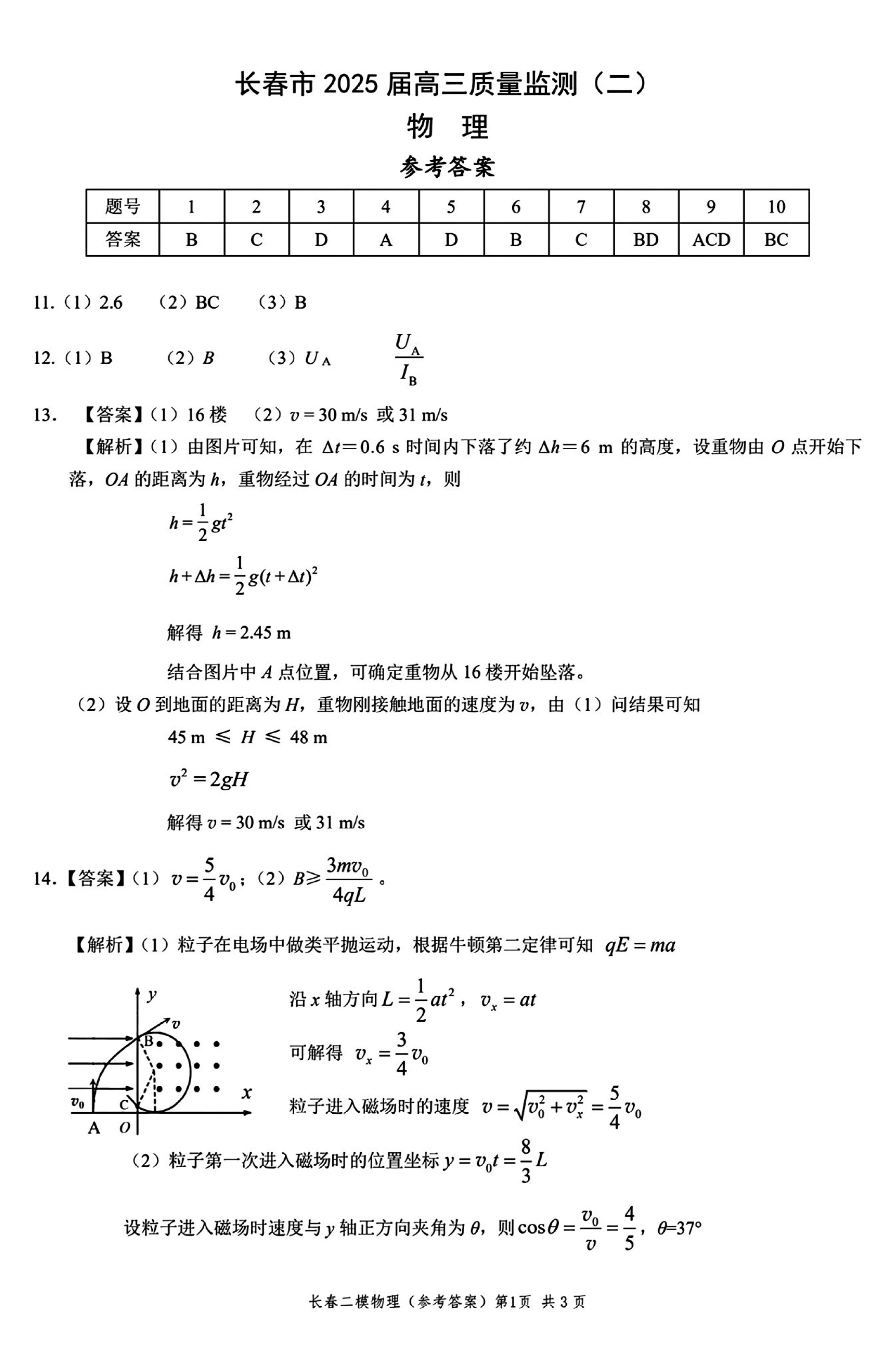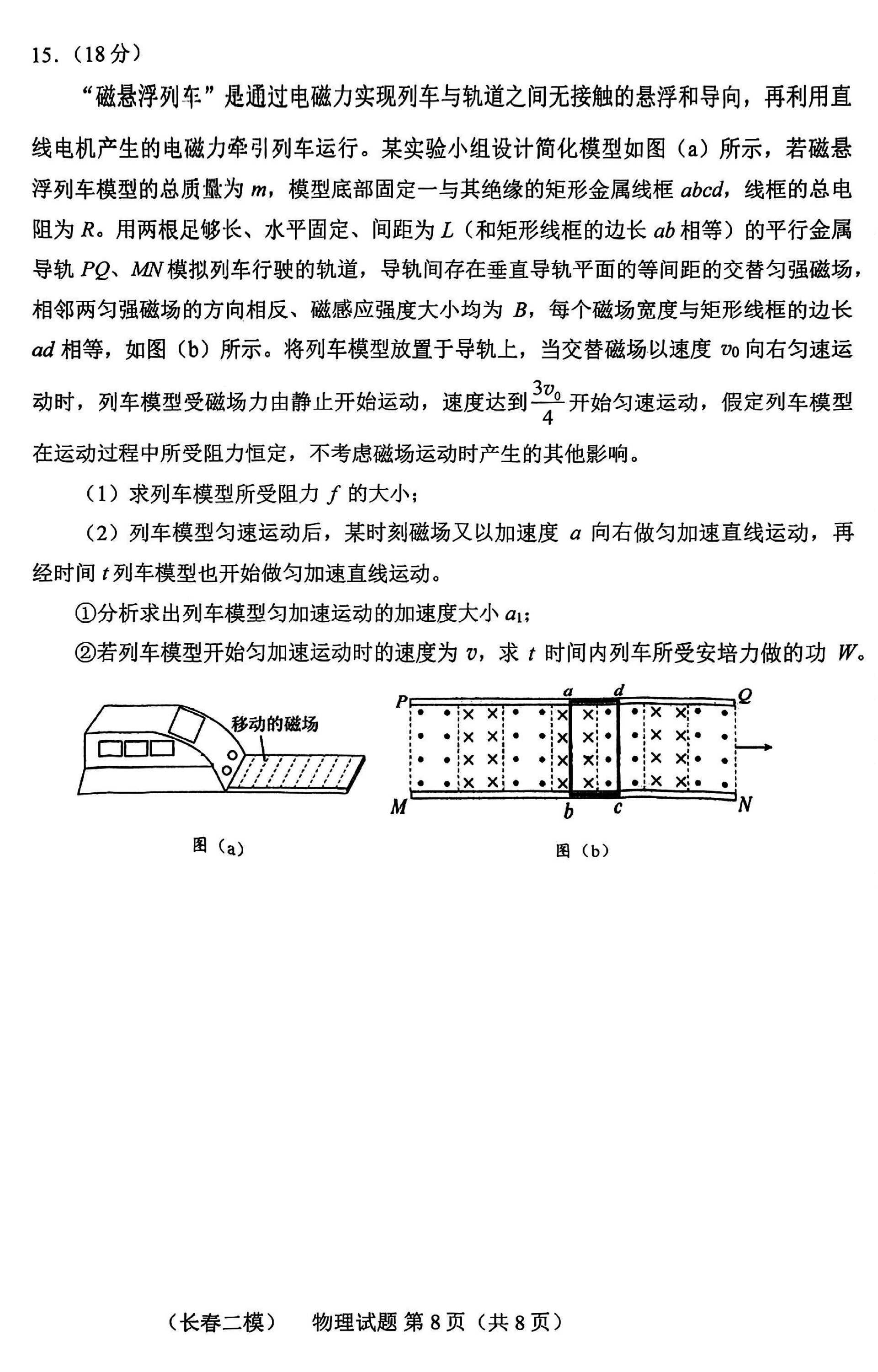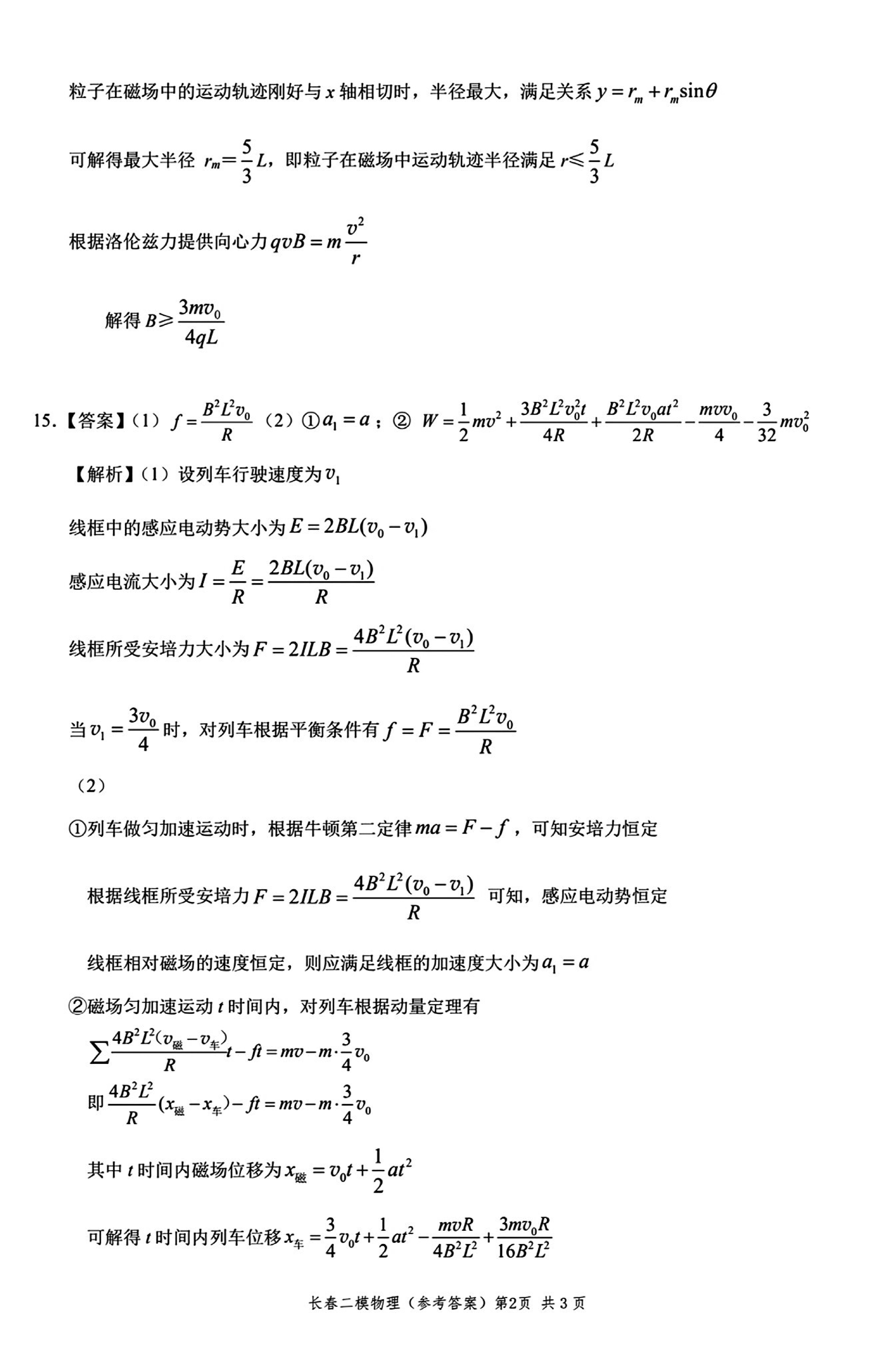 长春二模2025届高三质量监测(二)物理试题及答案 时间:2025-02-26 吉林 理综试题 长春二模2025届高三质量监测(二)物理考试已于近日开考,为方便考生考后及时查看考试情况,查漏补缺、弥补不足,本文整理了试题答案解析相关信息! 汇总:长春二模2025届高三质量监测(二)试题及答案汇总 物理试题及答案解析