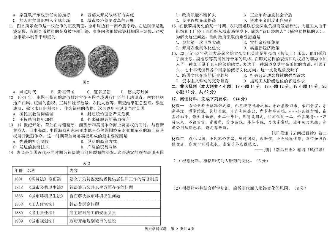 历史试题及答案解析