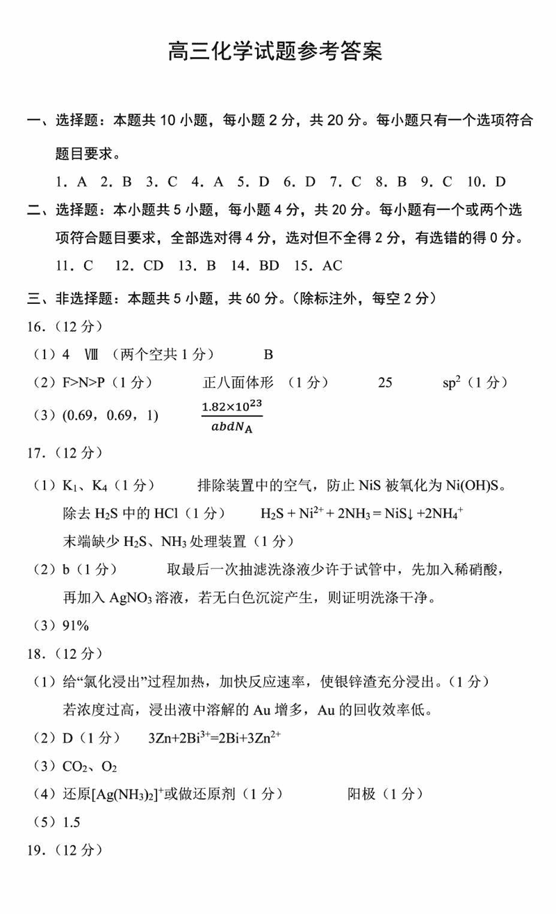 山东菏泽2025年高三一模化学试题及答案 时间:2025-02-27 山东 理综试题 山东菏泽2025年高三一模化学考试已于近日开考,为方便考生考后及时查看考试情况,查漏补缺、弥补不足,本文整理了试题答案解析相关信息! 汇总:山东菏泽2025年高三一模考试试题及答案汇总 化学试题及答案解析