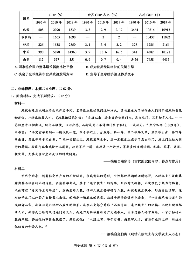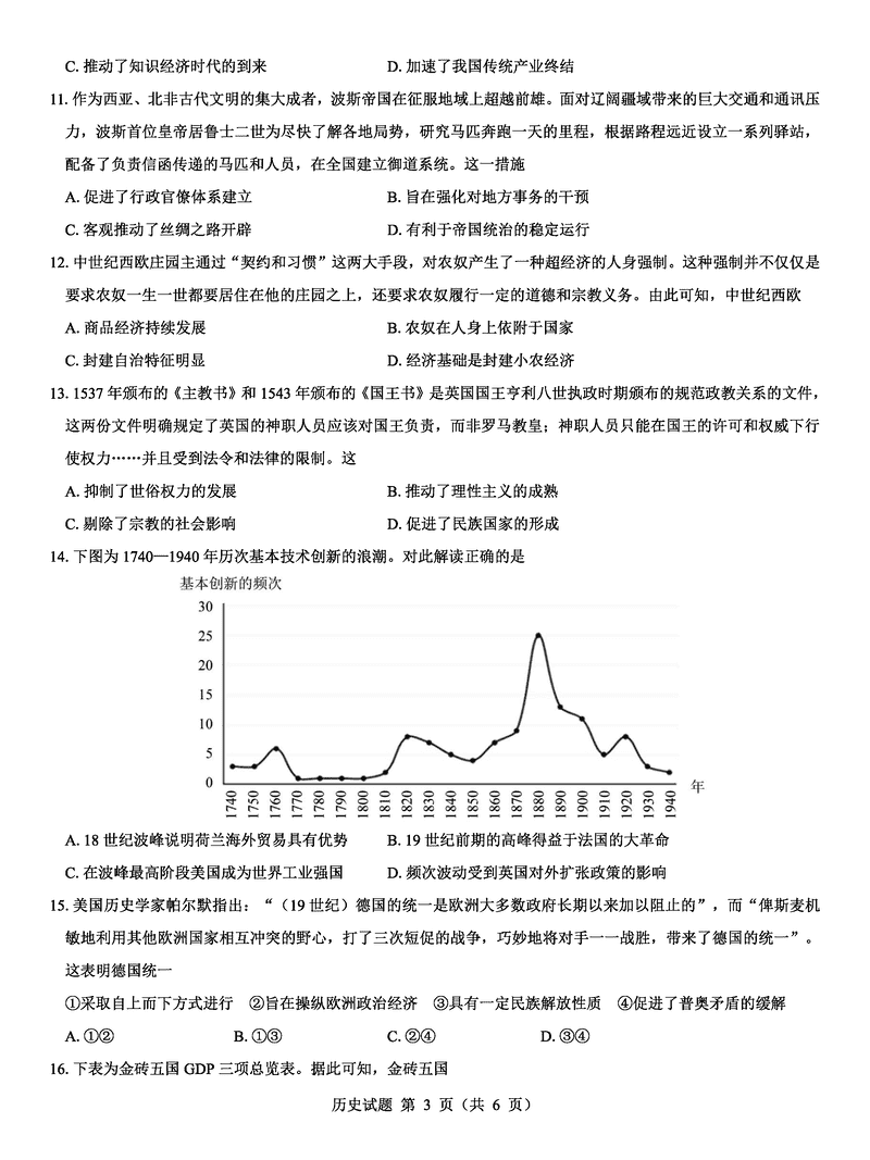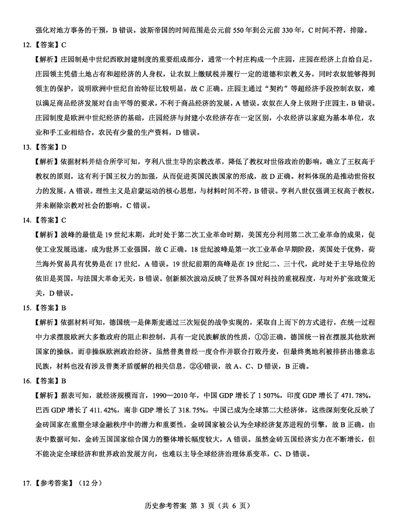 西北名校教研联盟2025届高三下学期2月联考历史试题及答案
