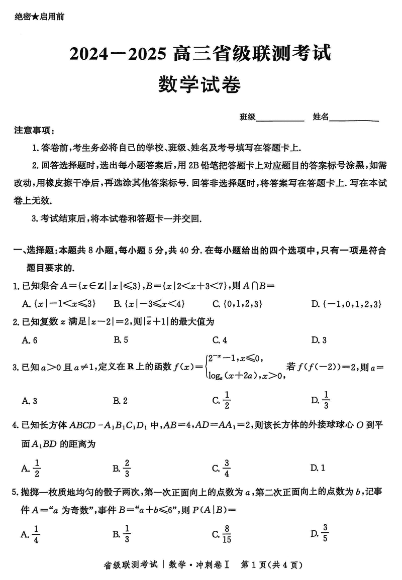 河北省2024-2025高三省级联测冲刺卷I数学考试已于近日开考,为方便考生考后及时查看考试情况,查漏补缺、弥补不足,本文整理了试题答案解析相关信息!