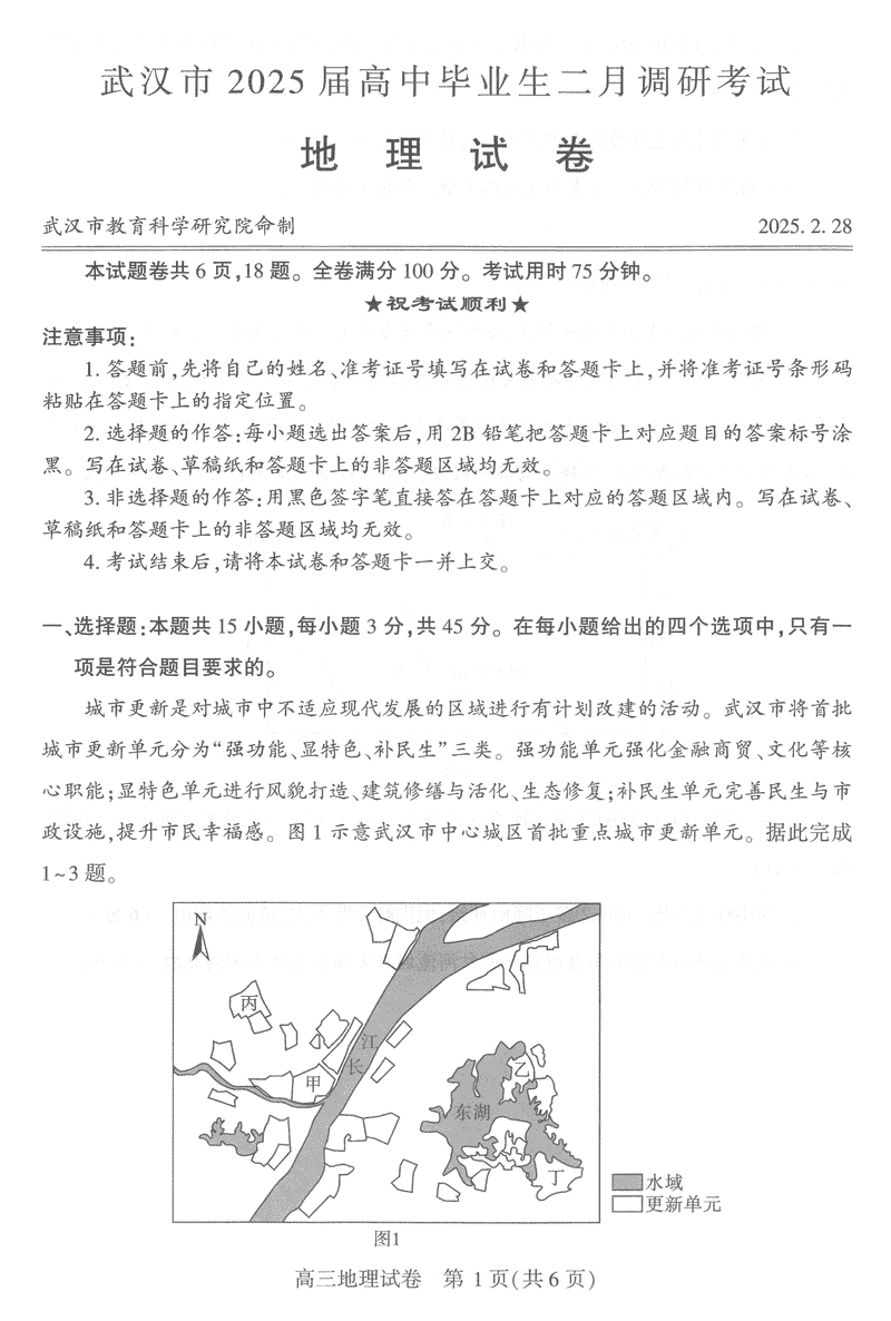 武汉市2025届高中毕业生二月调研地理试题及答案 时间:2025-03-01 湖北 文综试题 武汉市2025届高中毕业生二月调研地理考试已于近日开考,为方便考生考后及时查看考试情况,查漏补缺、弥补不足,本文整理了试题答案解析相关信息! 汇总:武汉市2025届高中毕业生二月调研考试试题及答案汇总 地理试题及答案解析