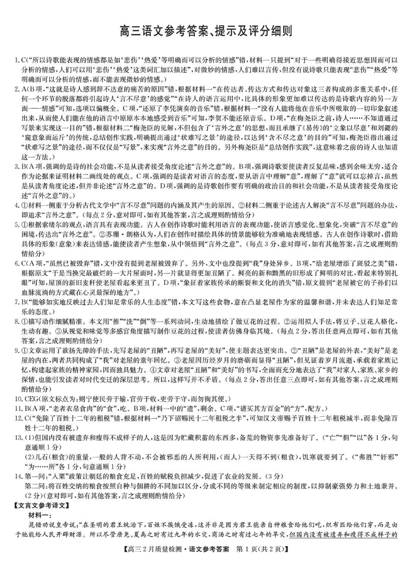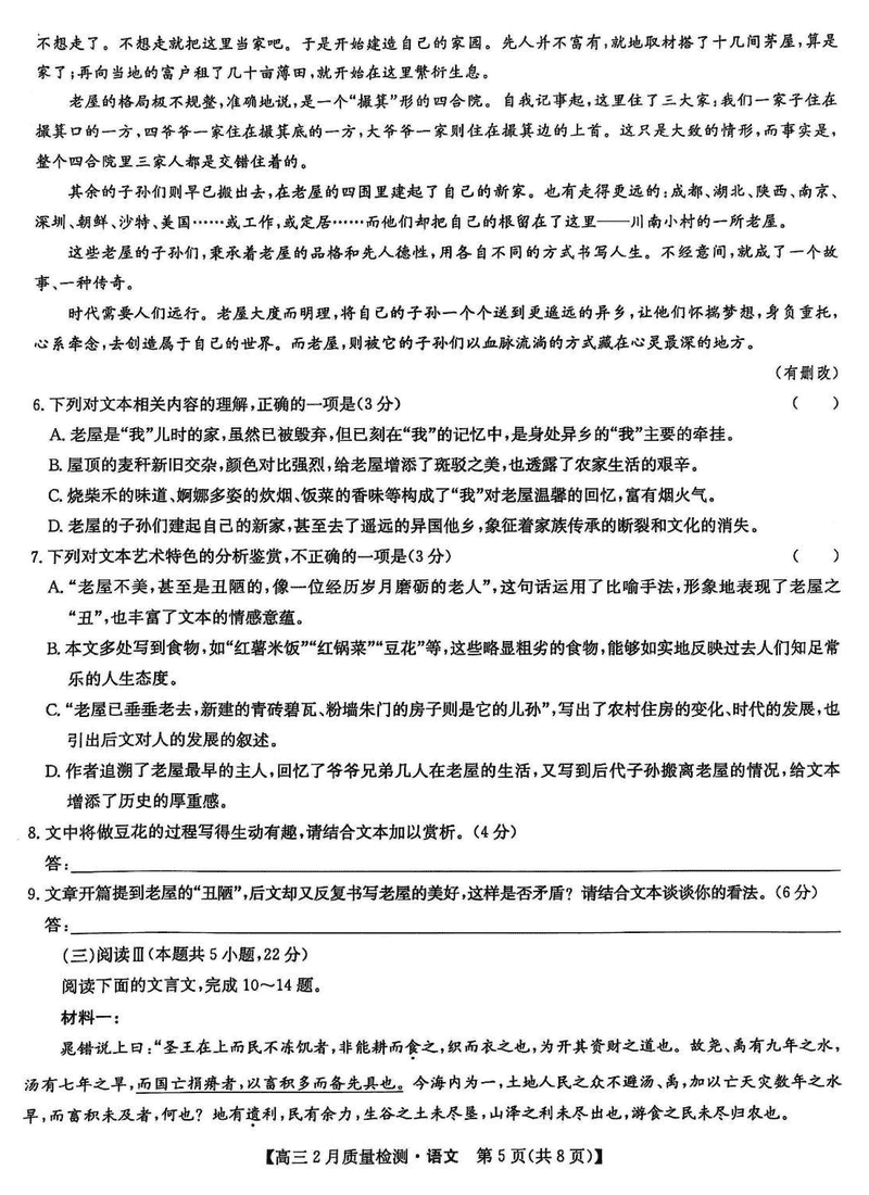 九师联盟2025届高三2月质量检测语文试题及答案 时间:2025-03-01 语文试题 九师联盟2025届高三2月质量检测语文考试已于近日开考,为方便考生考后及时查看考试情况,查漏补缺、弥补不足,本文整理了试题答案解析相关信息! 汇总:九师联盟2025届高三2月质量检测试题及答案汇总 语文试题及答案解析