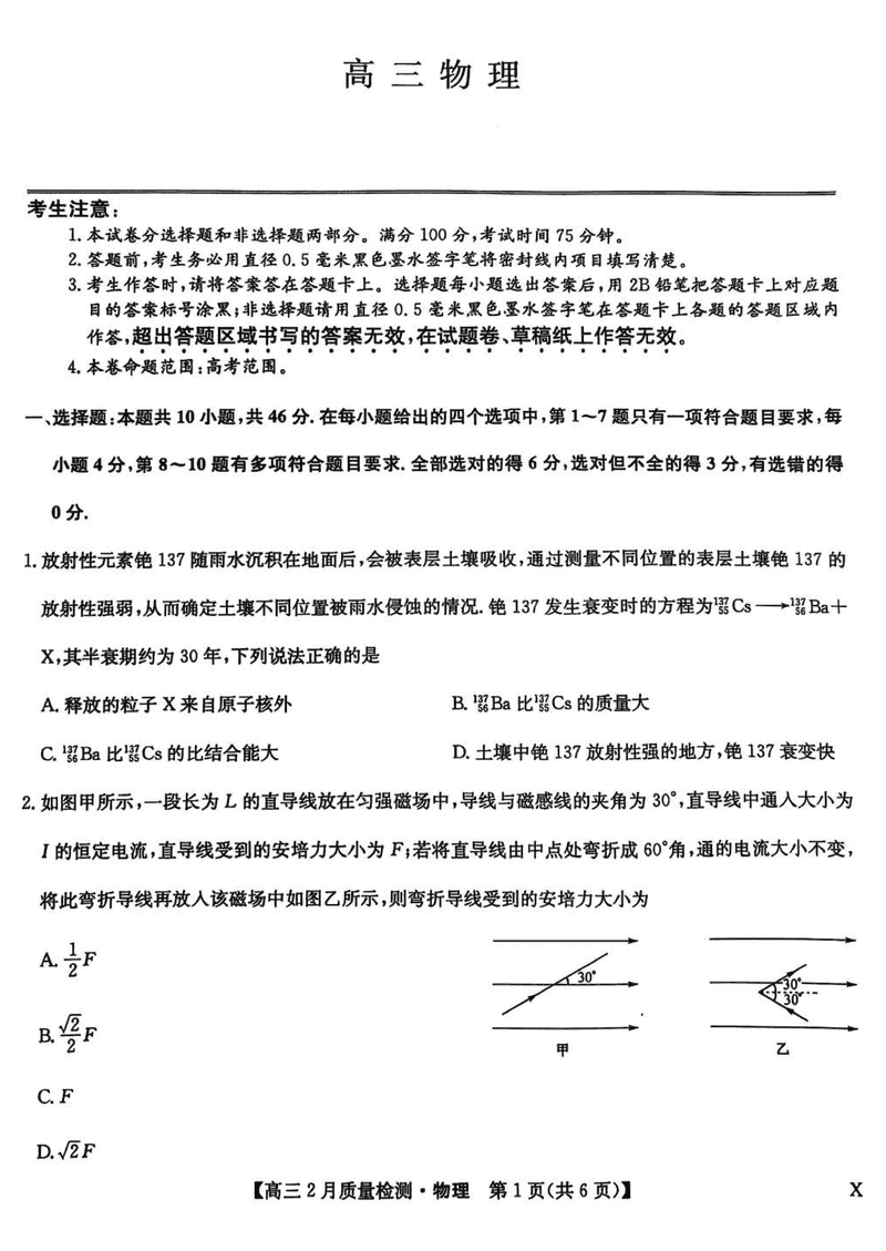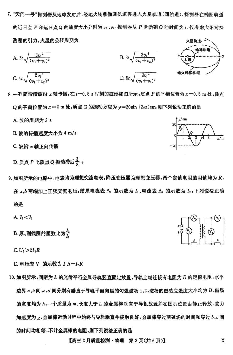 九师联盟2025届高三2月质量检测物理试题及答案 时间:2025-03-01 理综试题 九师联盟2025届高三2月质量检测物理考试已于近日开考,为方便考生考后及时查看考试情况,查漏补缺、弥补不足,本文整理了试题答案解析相关信息! 汇总:九师联盟2025届高三2月质量检测试题及答案汇总 物理试题及答案解析
