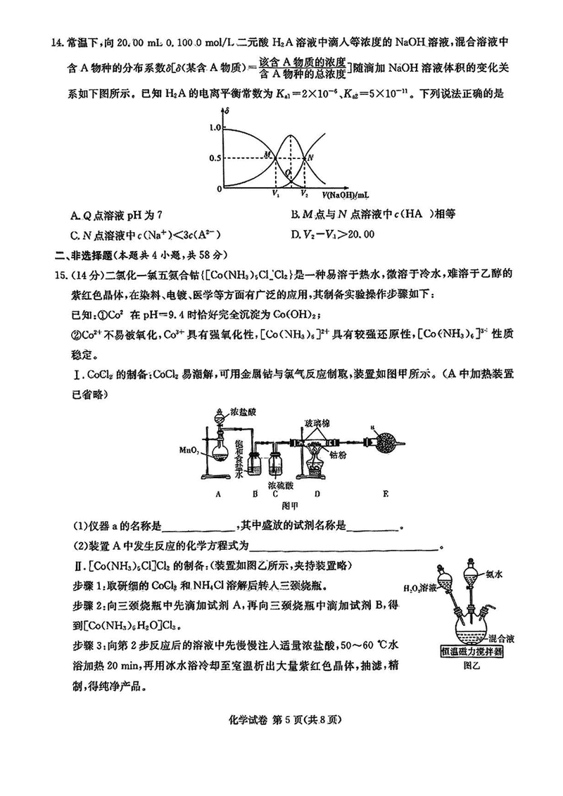 湖南省新高考教学教研联盟2025届第一次联考化学试题及答案