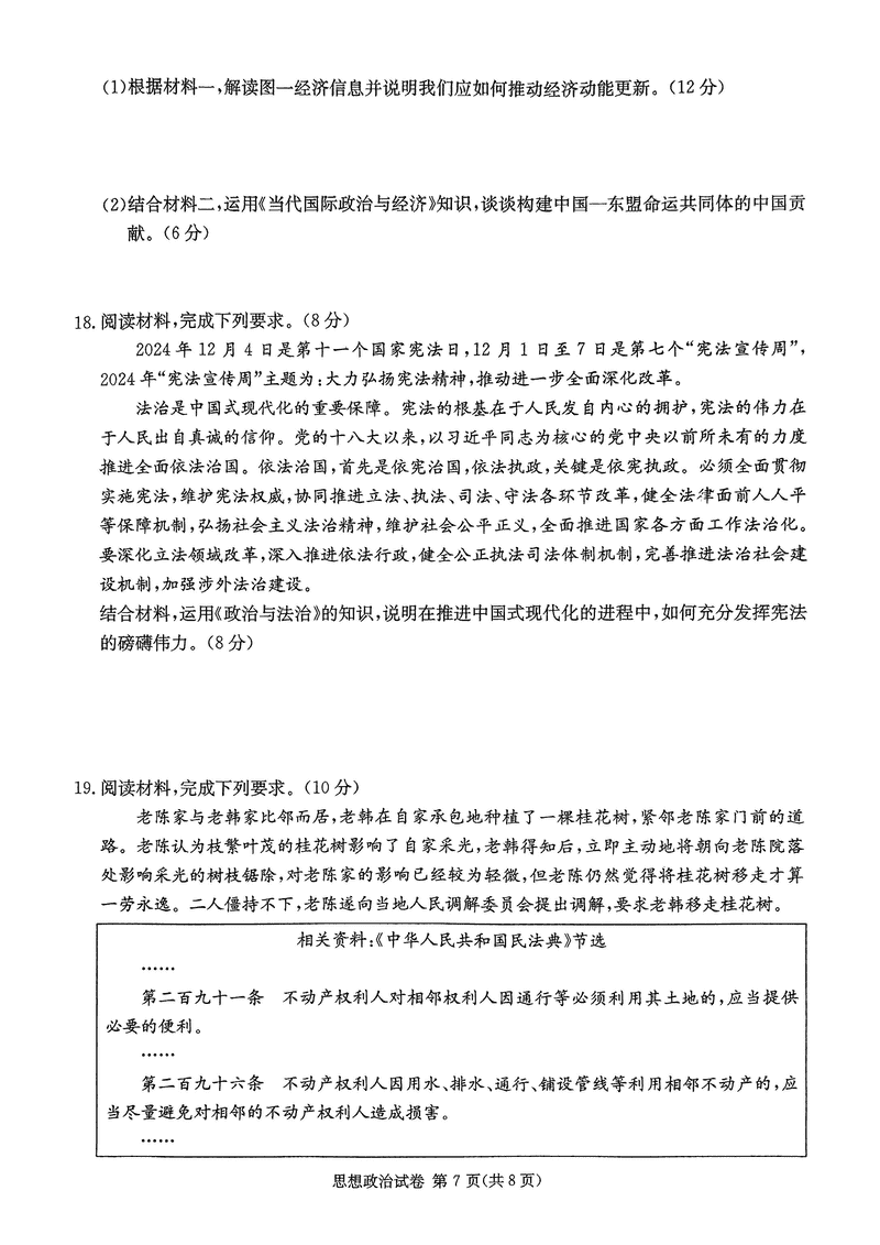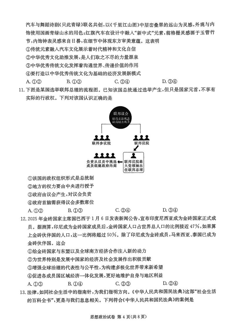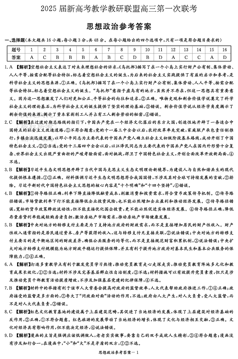 湖南省新高考教学教研联盟2025届第一次联考政治试题及答案