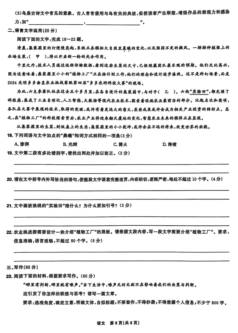 东北三省精准教学联考2025届高三3月联考语文试题及答案