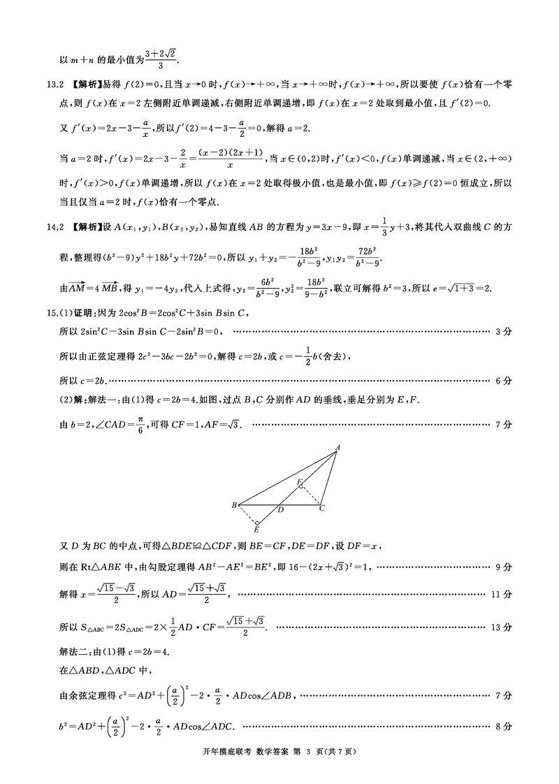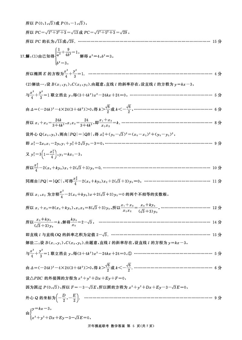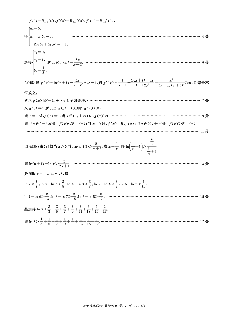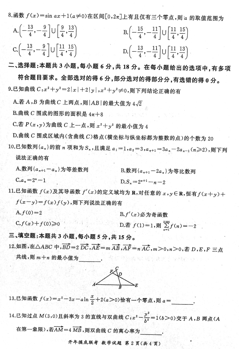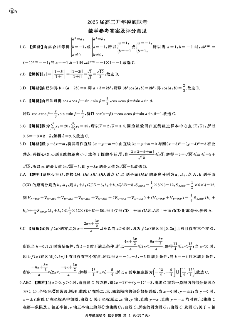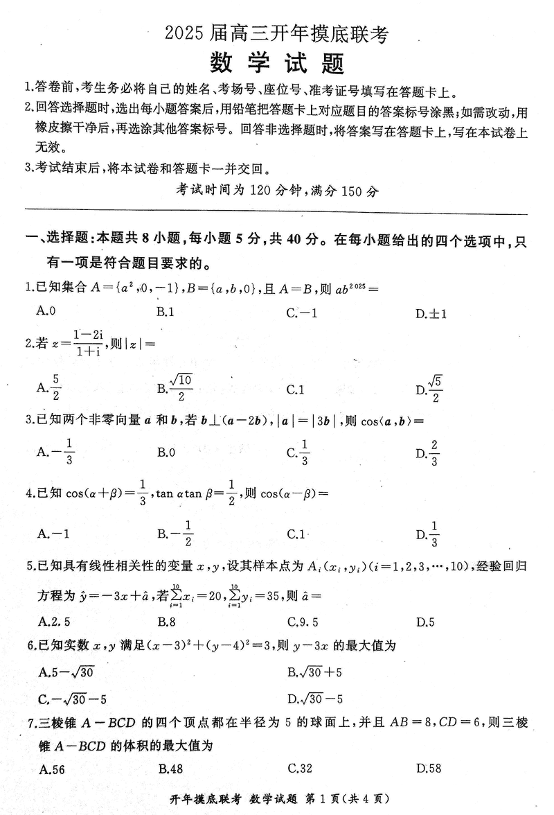辽宁省百师联盟2025届高三开年摸底联考数学试题及答案