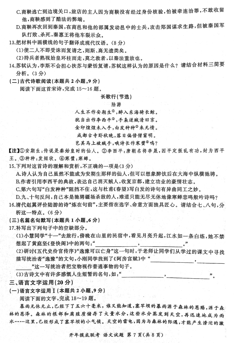 语文试题及答案解析