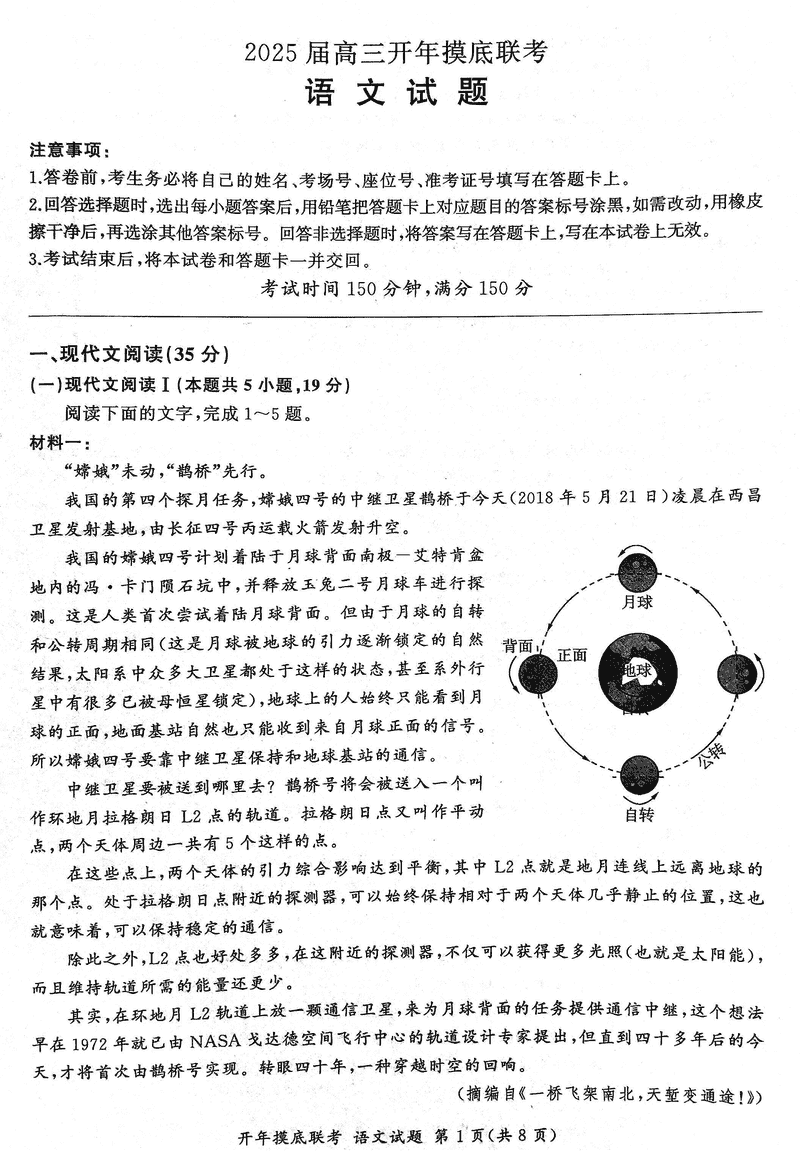辽宁省百师联盟2025届高三开年摸底联考语文试题及答案