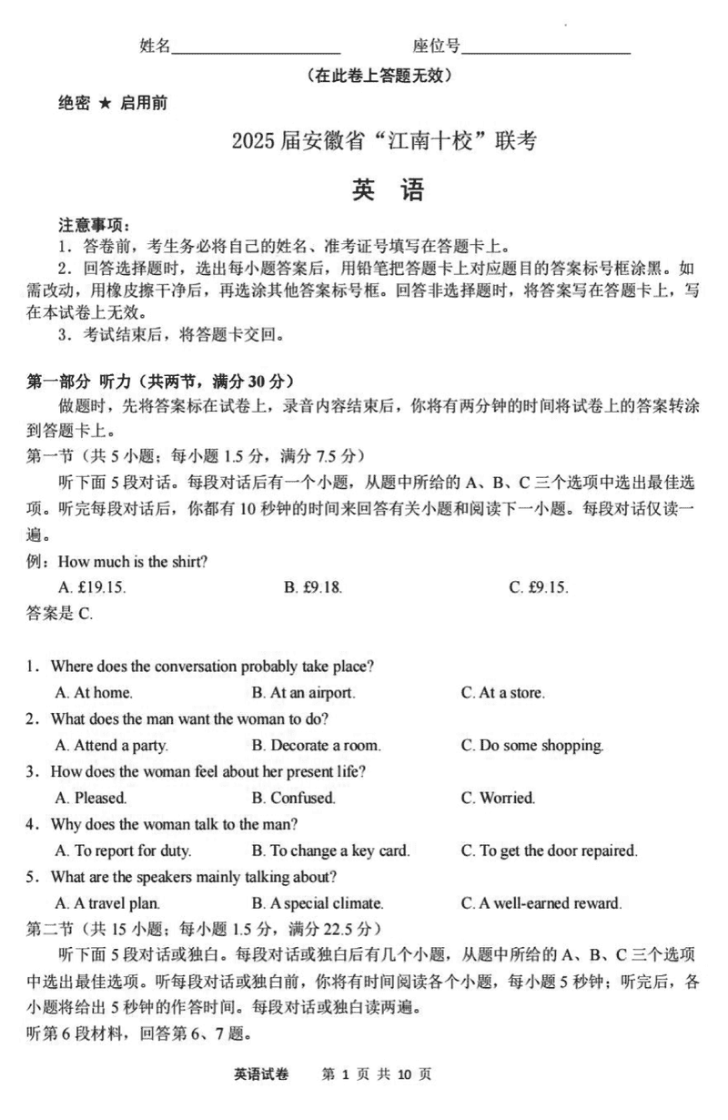 安徽省江南十校一模2025届高三下学期第一次联考英语考试已于近日开考,为方便考生考后及时查看考试情况,查漏补缺、弥补不足,本文整理了试题答案解析相关信息!
