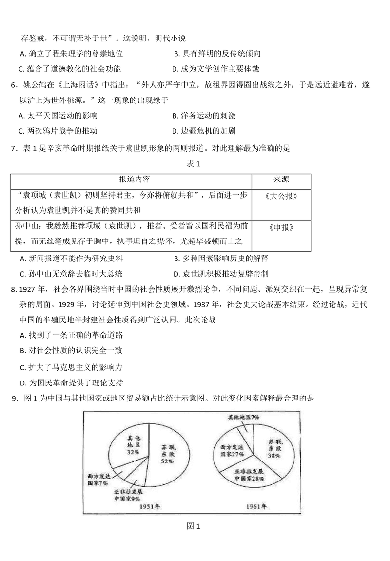 历史试题及答案解析
