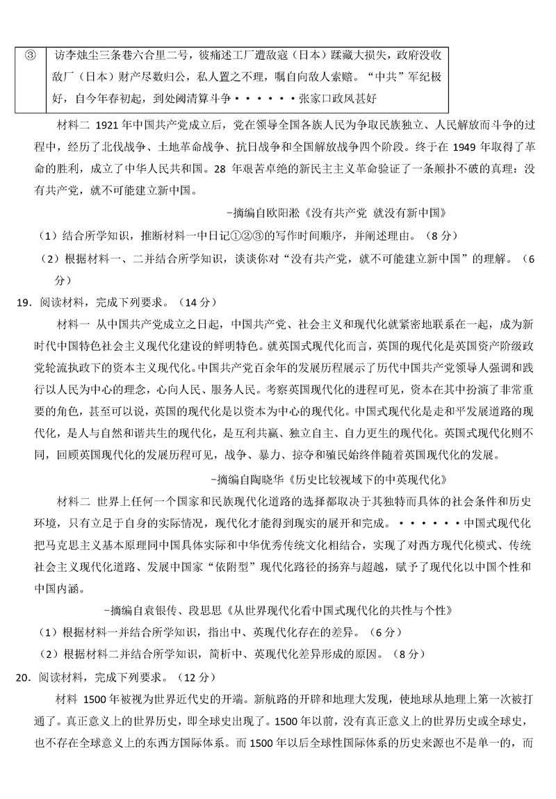 河南 文综试题