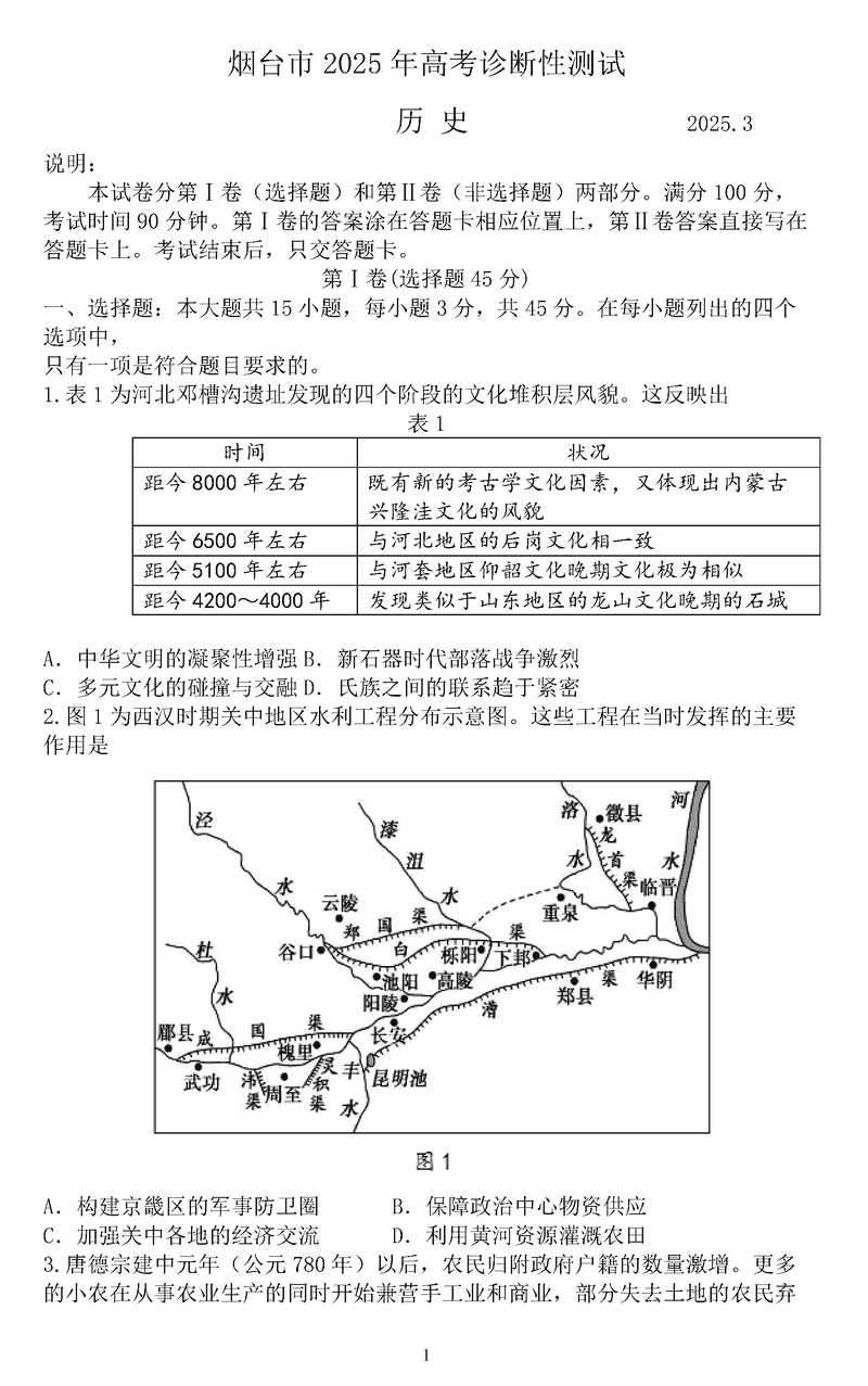 烟台、德州、东营2025年3月高三一模历史试题及答案 时间:2025-03-06 山东 文综试题 烟台、德州、东营2025年3月高三一模历史考试已于近日开考,为方便考生考后及时查看考试情况,查漏补缺、弥补不足,本文整理了试题答案解析相关信息! 汇总:烟台、德州、东营2025年3月高三一模试题及答案汇总 历史试题及答案解析