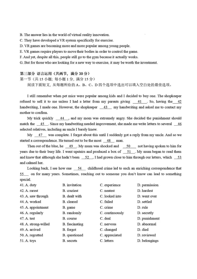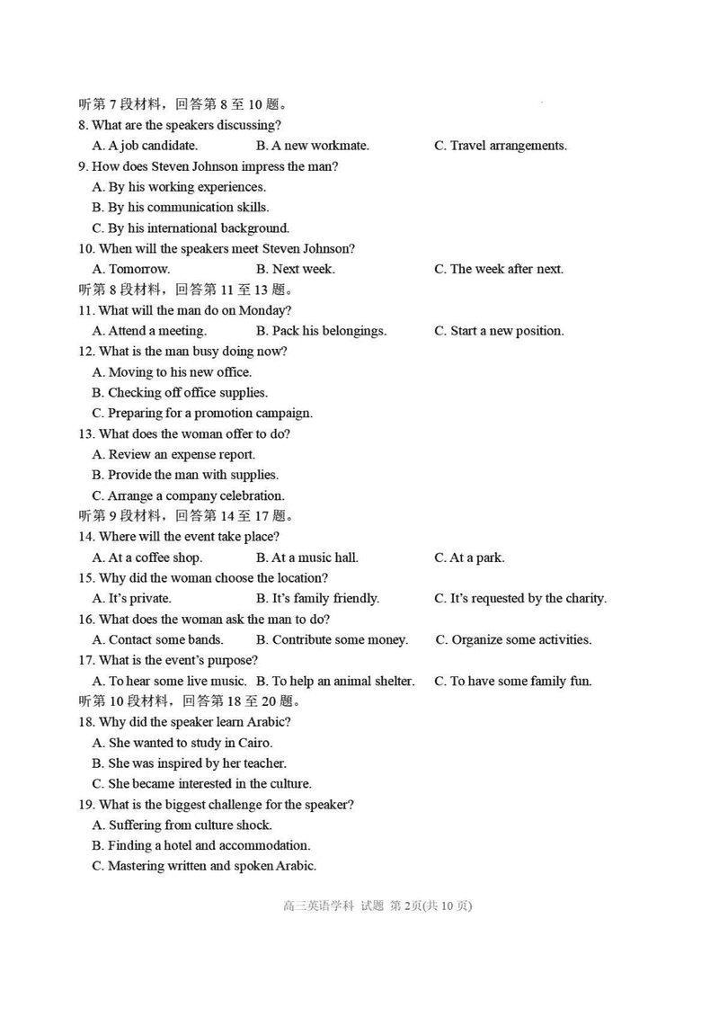 浙江天域全国名校协作体2024-2025学年高三下学期3月月考英语试题及答案