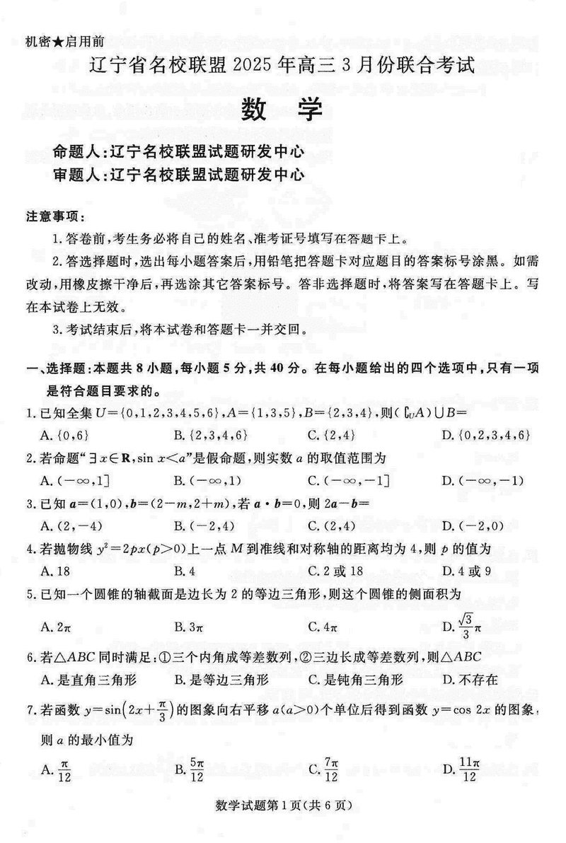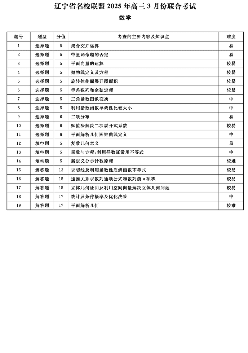 辽宁名校联盟2025届高三下学期3月联考数学考试已于近日开考,为方便考生考后及时查看考试情况,查漏补缺、弥补不足,本文整理了试题答案解析相关信息!