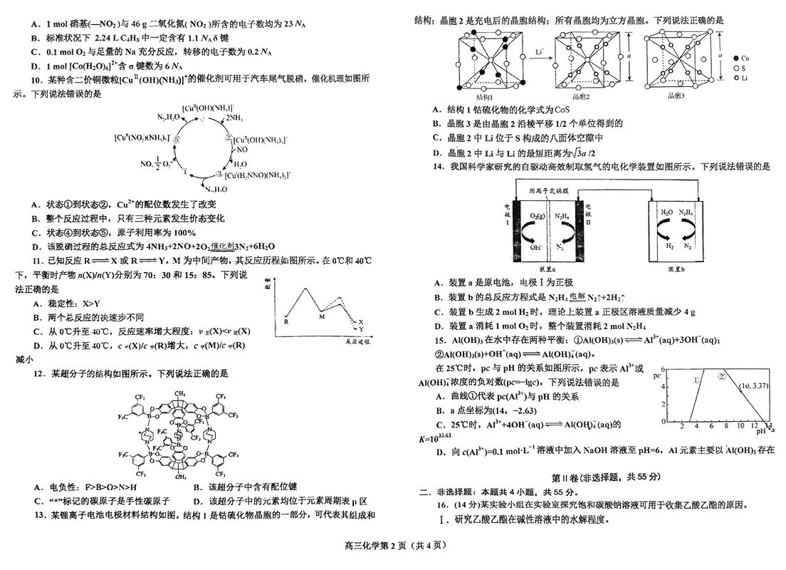 鞍山市2024-2025学年高三下学期第一次月考化学试题及答案