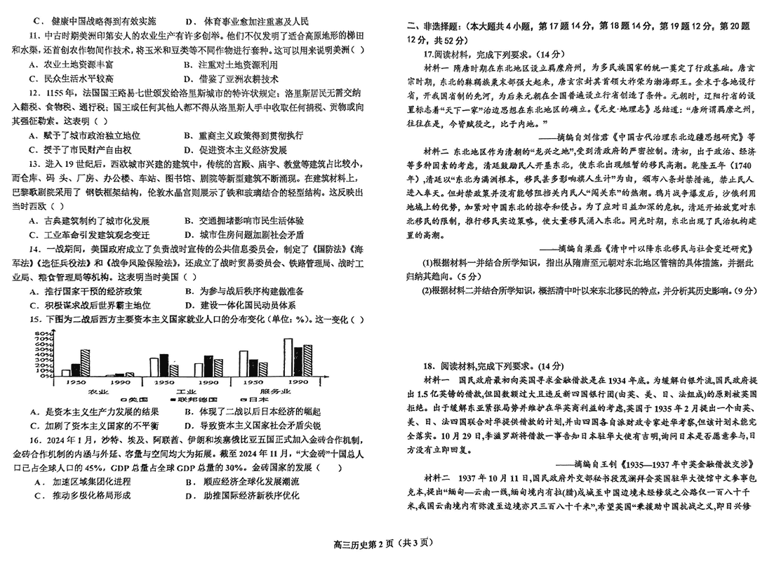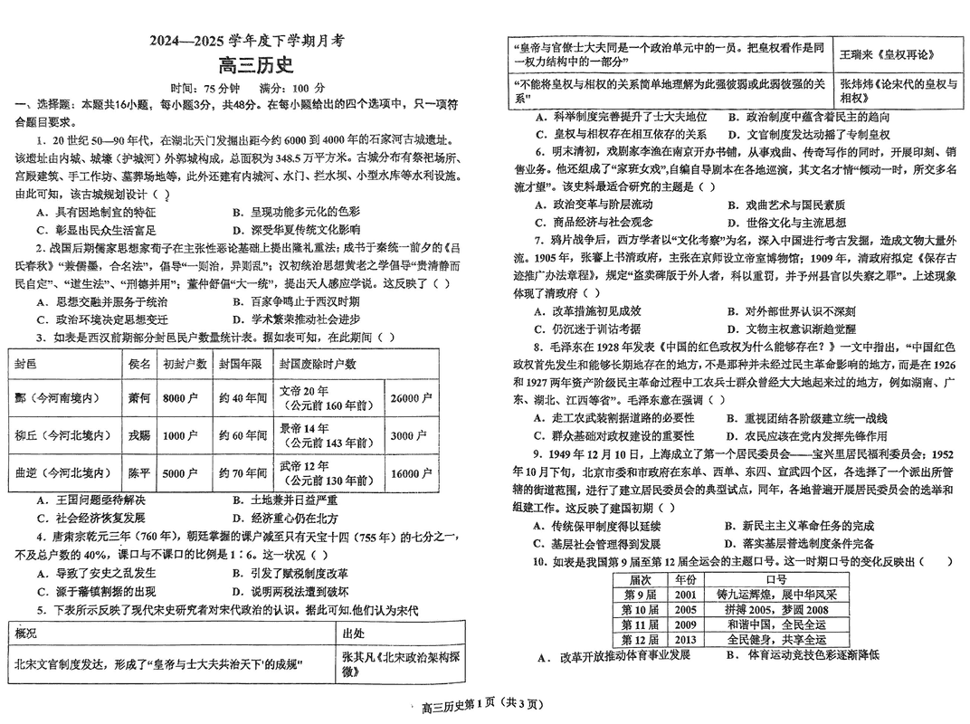 鞍山市2024-2025学年高三下学期第一次月考历史试题及答案