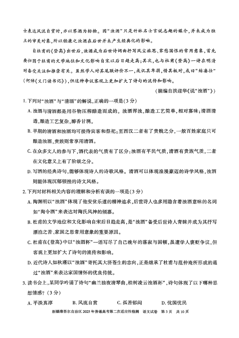 新疆2025年普通高考第二次适应性检测语文试题及答案 时间:2025-03-09 新疆 语文试题 新疆2025年普通高考第二次适应性检测语文考试已于近日开考,为方便考生考后及时查看考试情况,查漏补缺、弥补不足,本文整理了试题答案解析相关信息! 汇总:新疆2025年普通高考第二次适应性检测试题及答案汇总 语文试题及答案解析