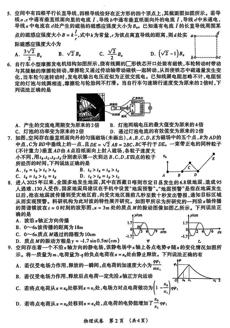 广西2025年3月高三第二次高考适应性测物理试题及答案