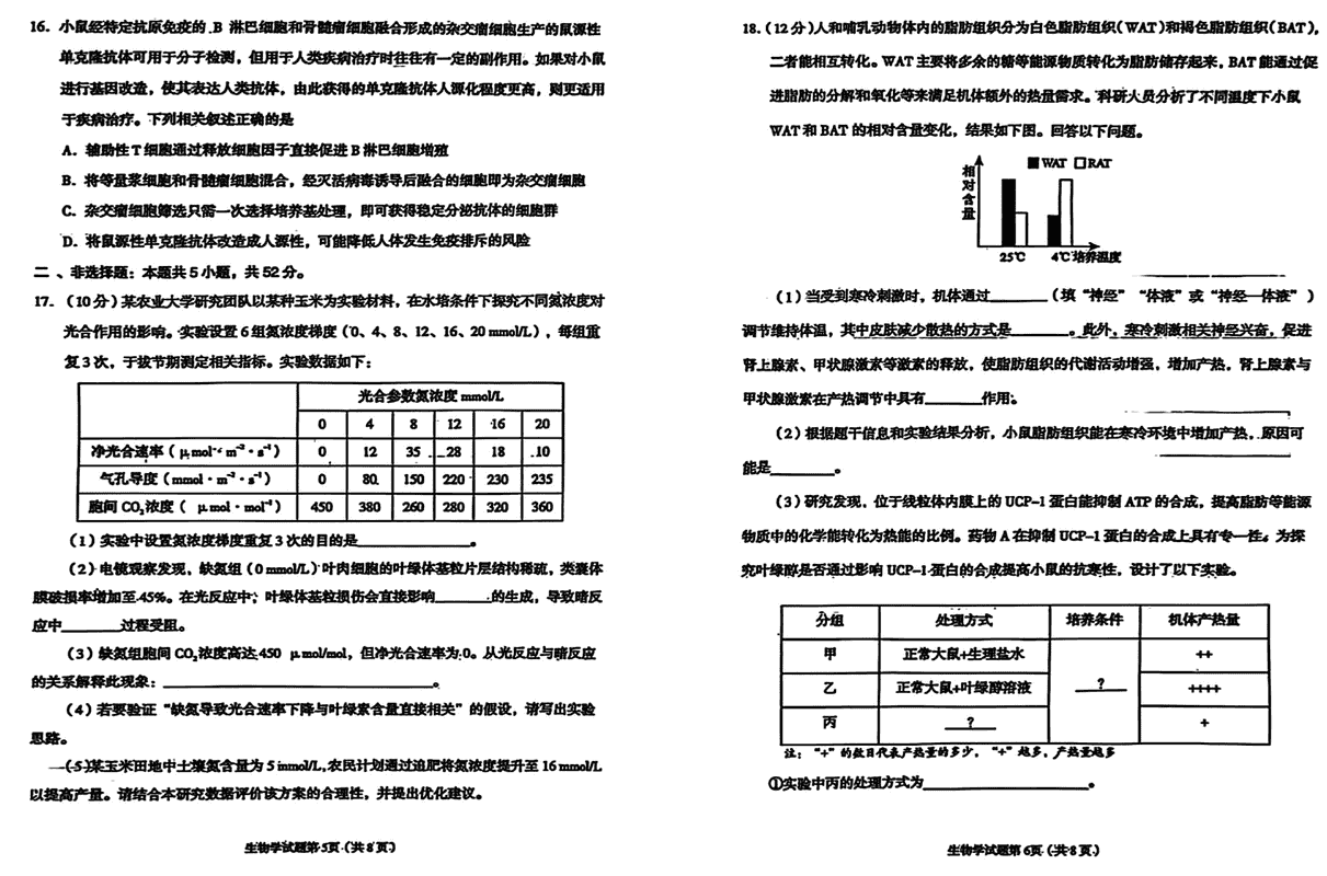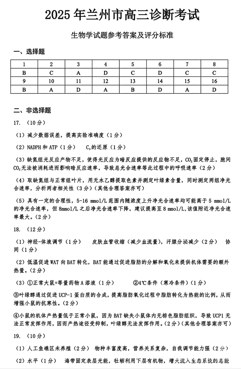 兰州一模2025届高三下学期诊断生物试题及答案 时间:2025-03-09 甘肃 理综试题 兰州一模2025届高三下学期诊断生物考试已于近日开考,为方便考生考后及时查看考试情况,查漏补缺、弥补不足,本文整理了试题答案解析相关信息! 汇总:兰州一模2025届高三下学期诊断考试试题及答案汇总 生物试题及答案解析
