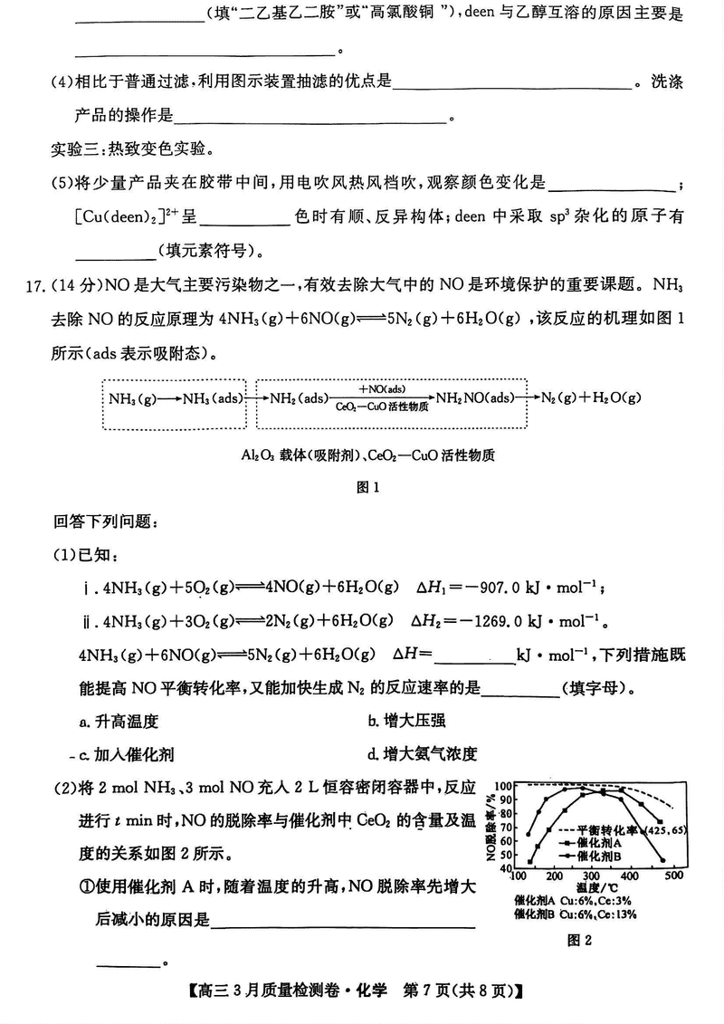 山西省三晋卓越联盟2025届高三3月质检化学试题及答案