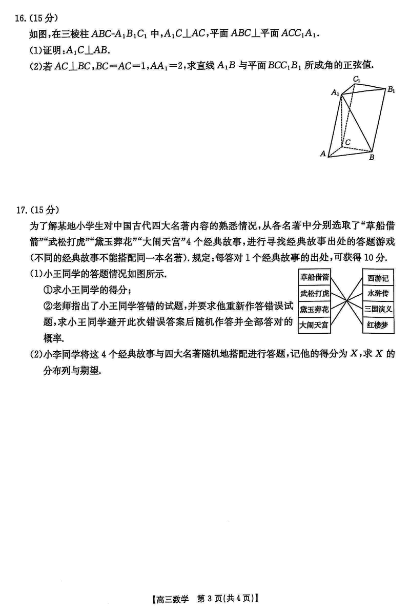 贵州安顺2025届高三下学期3月二模联考数学试题及答案