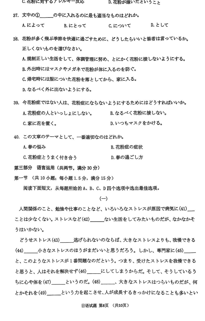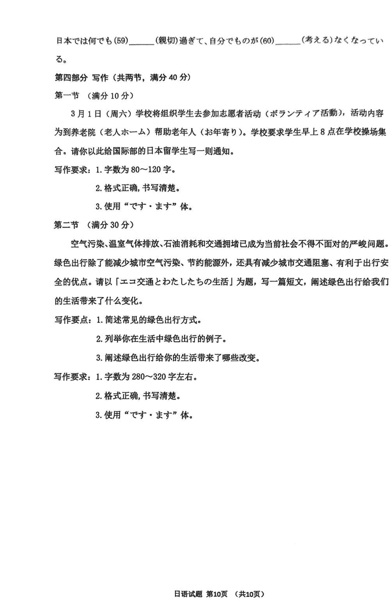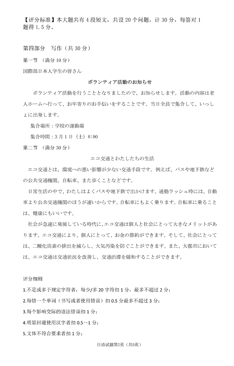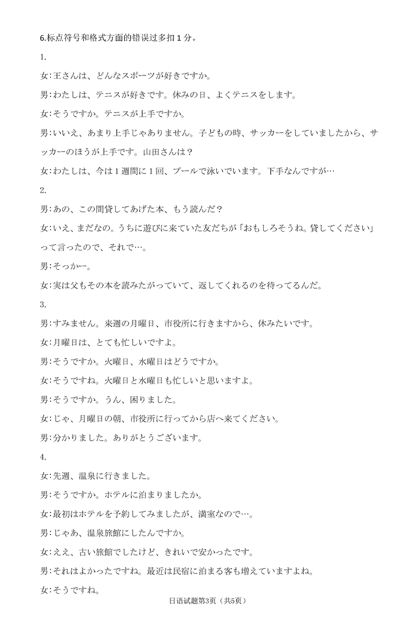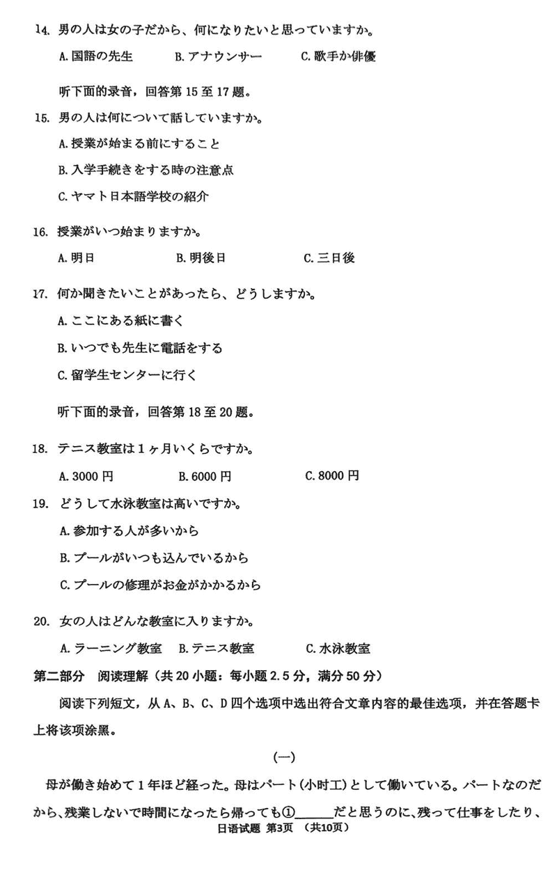 淄博市、滨州市2025届高三下学期3月一模日语试题及答案