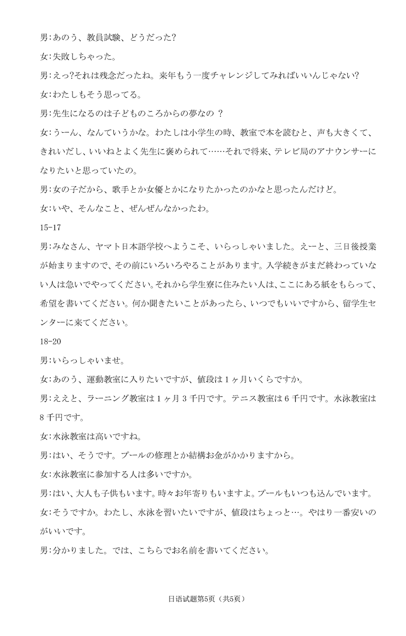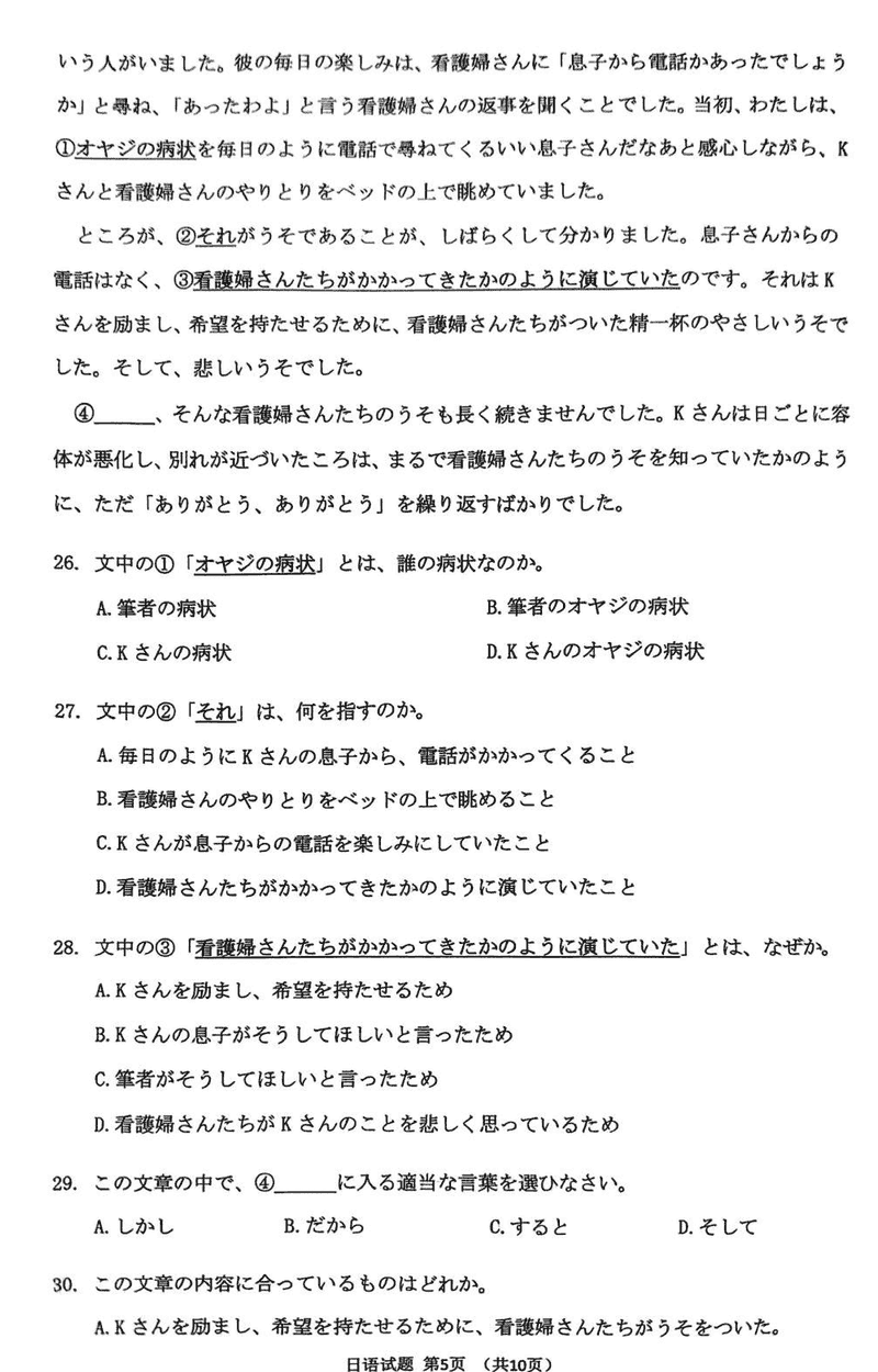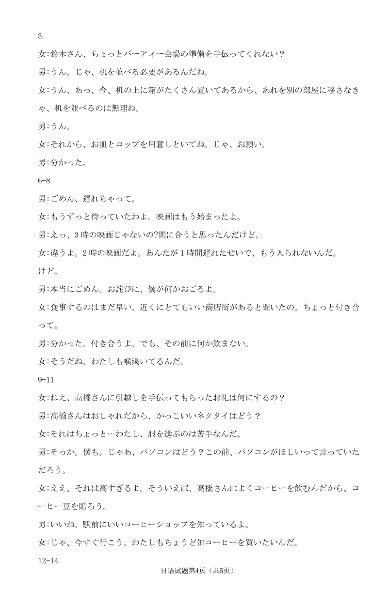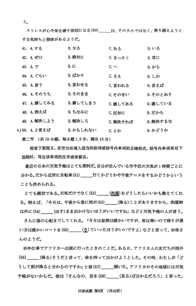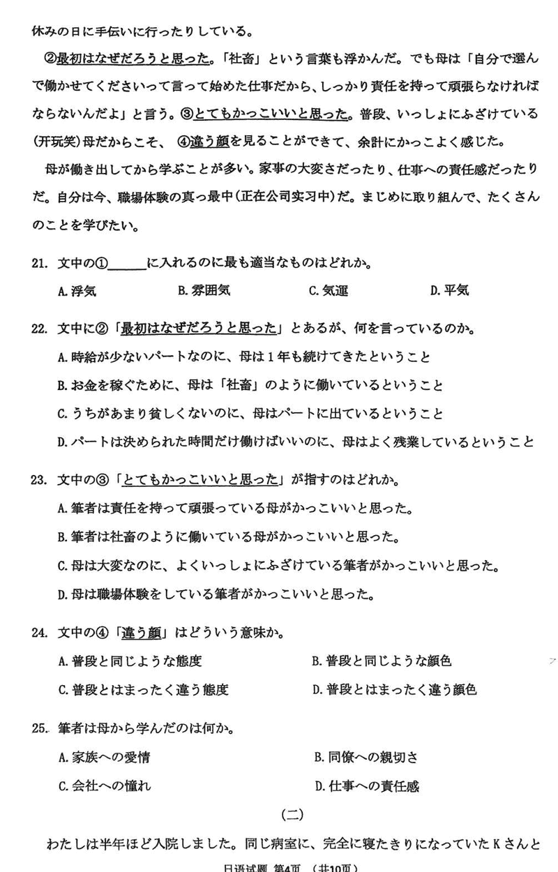 淄博市、滨州市2025届高三下学期3月一模日语试题及答案