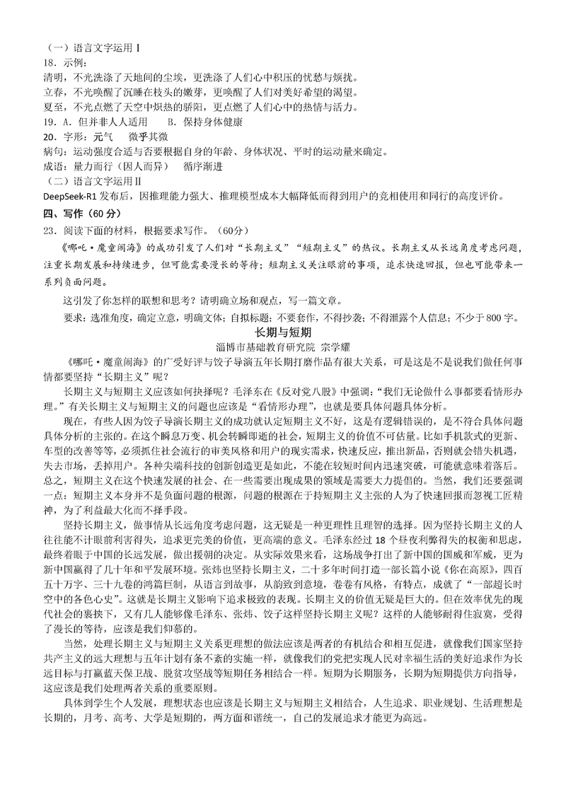 淄博市、滨州市2025届高三下学期3月一模语文考试已于近日开考,为方便考生考后及时查看考试情况,查漏补缺、弥补不足,本文整理了试题答案解析相关信息!