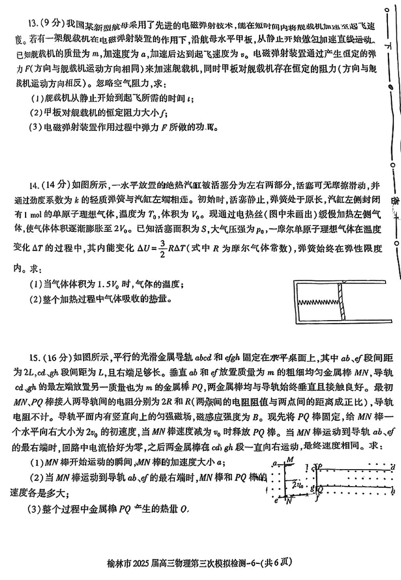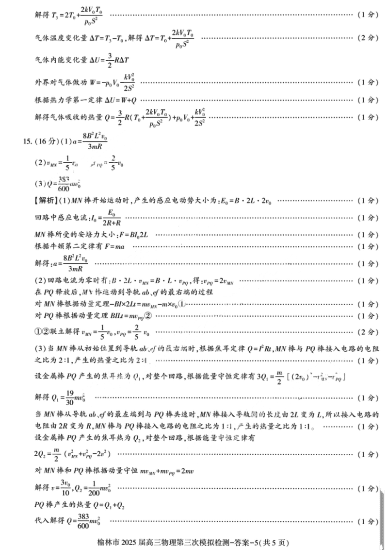 陕西榆林2025届高三第三次模拟检测物理试题及答案 时间:2025-03-11 陕西 理综试题 陕西榆林2025届高三第三次模拟检测物理考试已于近日开考,为方便考生考后及时查看考试情况,查漏补缺、弥补不足,本文整理了试题答案解析相关信息! 汇总:陕西榆林2025届高三第三次模拟检测试题及答案汇总 物理试题及答案解析
